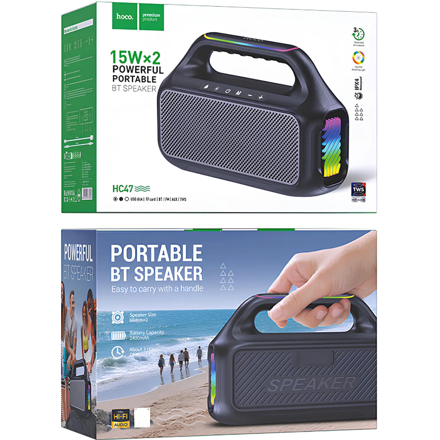 Портативная акустика Hoco HC47 представляет собой компактное устройство для воспроизведения музыки в различных условиях — дома, на прогулке или в поездке. Корпус выполнен из прочного пластика с текстурированными вставками, которые уменьшают заметность следов использования и повышают устойчивость к внешним воздействиям. Встроенный аккумулятор обеспечивает автономную работу, позволяя использовать колонку без постоянного подключения к источнику питания. Поддержка беспроводного соединения через Bluetooth упрощает подключение смартфонов, планшетов и других совместимых устройств без лишних проводов. Дополнительно предусмотрены альтернативные способы воспроизведения, включая использование карт памяти и подключение через AUX-разъём. Элементы управления размещены непосредственно на корпусе, обеспечивая быстрый доступ к основным функциям без необходимости обращаться к подключенному устройству. Конструкция предусматривает удобную переноску, что делает колонку практичным решением для перемещения и использования в разных местах. Акустическая система ориентирована на стабильное и сбалансированное воспроизведение звука на стандартных уровнях громкости. Встроенный микрофон расширяет функциональность устройства, позволяя использовать его для голосовых вызовов в режиме громкой связи.