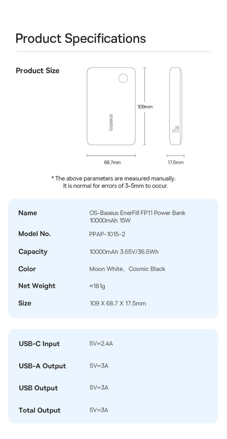 Особенности внешнего аккумулятора Baseus EnerFill FP11 15W (10000mAh):