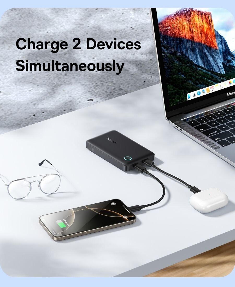 • Емкость 10000 мА·ч для до двух полных зарядок смартфона и подзарядки мелких гаджетов;