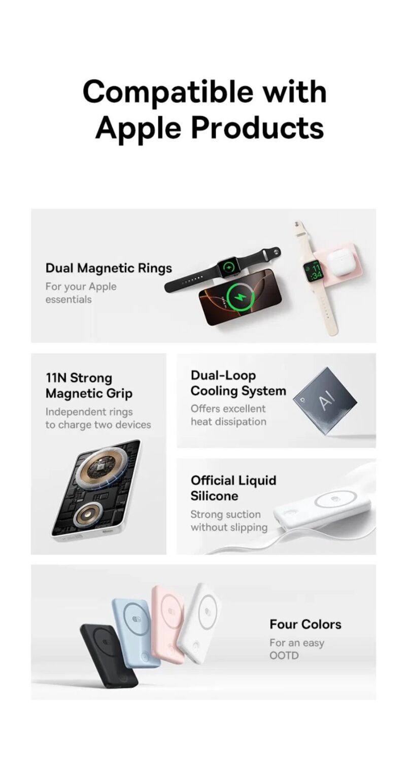 • Магнитная конструкция 2-в-1 для одновременной зарядки iPhone и Apple Watch;