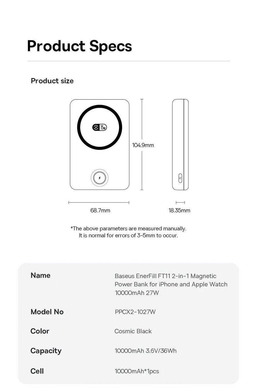 Особенности внешнего аккумулятора Baseus EnerFill FT11 Magnetic 27W (10000mAh):