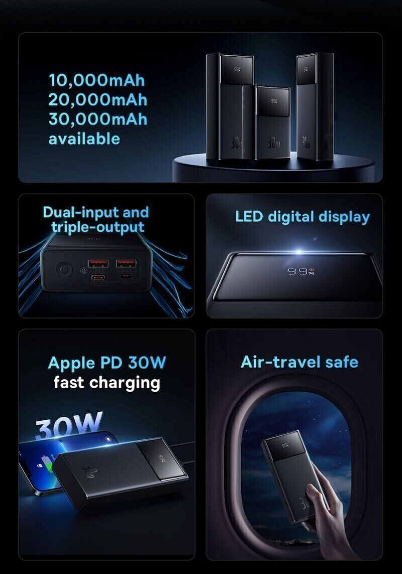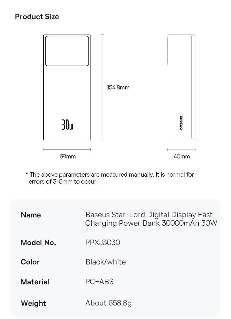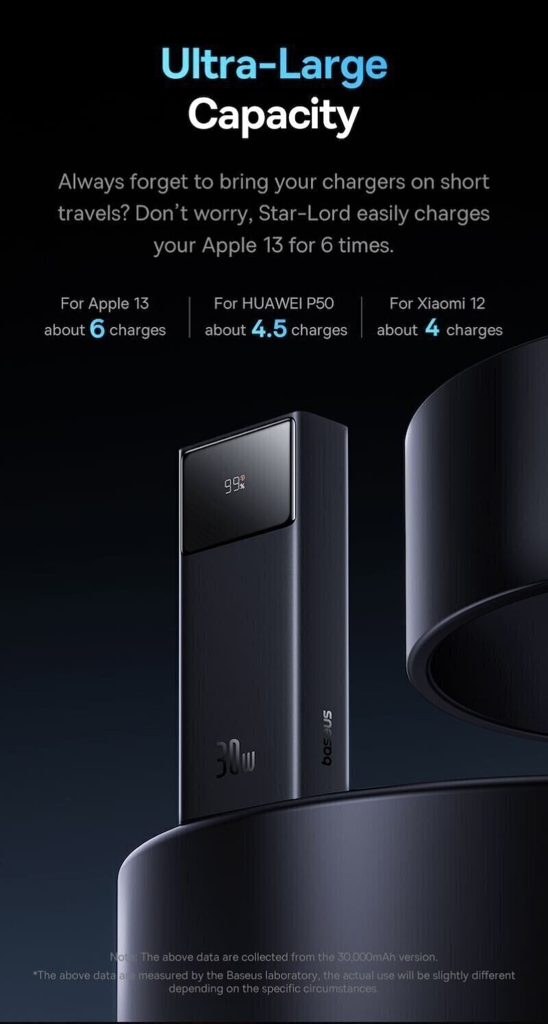 Особенности внешнего аккумулятора Baseus Star-Lord Digital Display 30W (30000mAh):