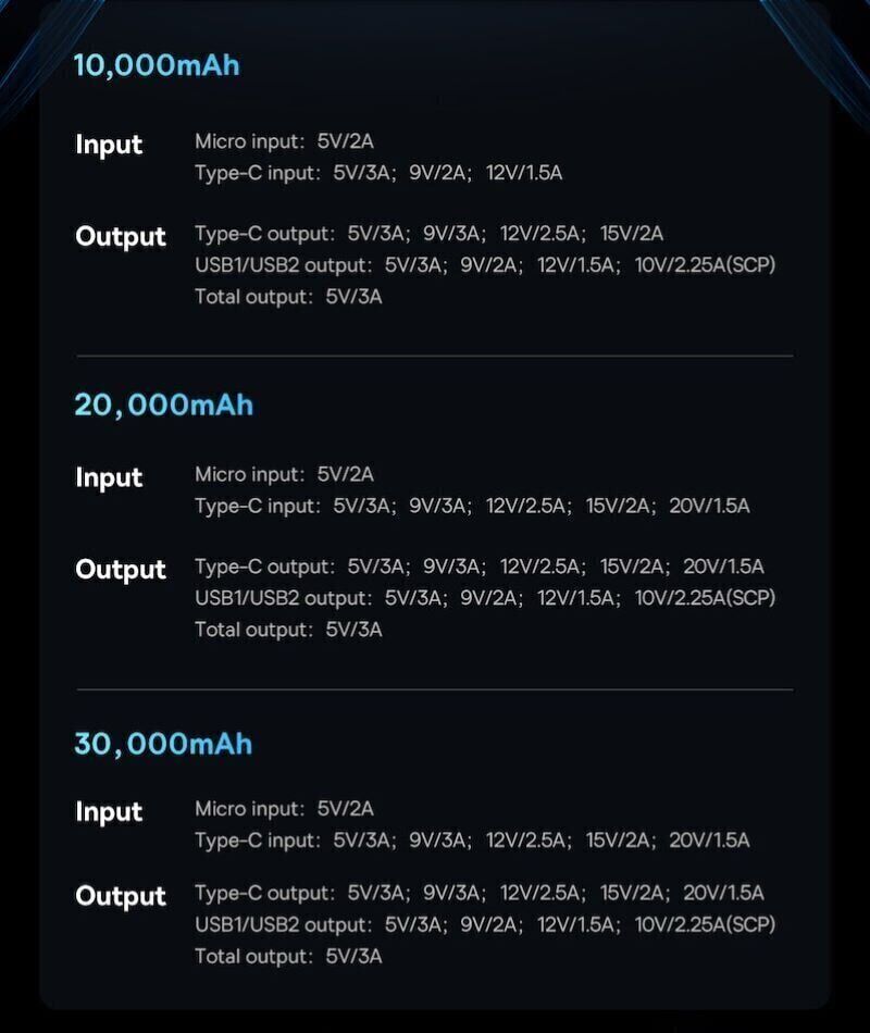 - Два входа (USB Type-C и microUSB) обеспечивают гибкость при подключении к различным источникам питания;