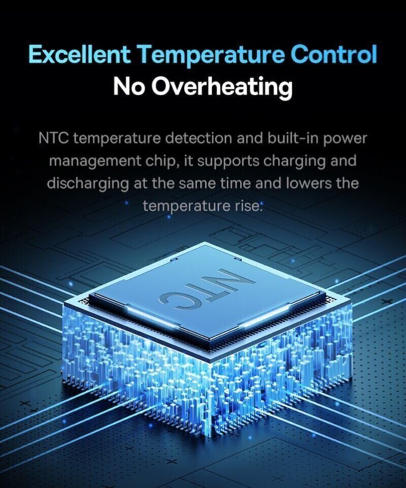 - LED-дисплей с цифровой индикацией показывает точный процент заряда и статус работы портов;