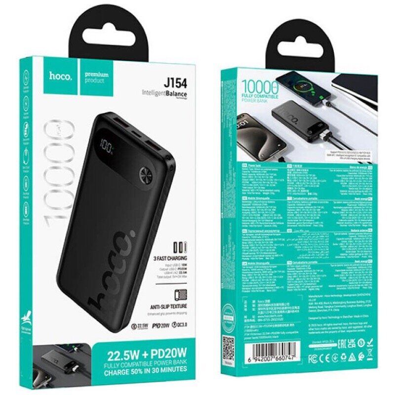 Внешний аккумулятор Hoco J154 22.5W + PD20W (10000mAh) — это надежный и современный источник энергии, созданный для активных пользователей, которым важно всегда оставаться на связи. Лаконичный дизайн в сочетании с продуманной эргономикой делает устройство не только функциональным, но и стильным элементом повседневного набора гаджетов. Корпус из прочного огнеупорного пластика обеспечивает высокий уровень безопасности и устойчивость к механическим воздействиям. Благодаря поддержке протоколов быстрой зарядки PD, QC, FCP, AFC и SCP аккумулятор уверенно справляется с задачей подпитки смартфонов, планшетов и прочих устройств в ускоренном режиме. Встроенный LED-индикатор информирует о текущем уровне заряда, помогая контролировать остаток емкости и планировать использование энергии с максимальной эффективностью.