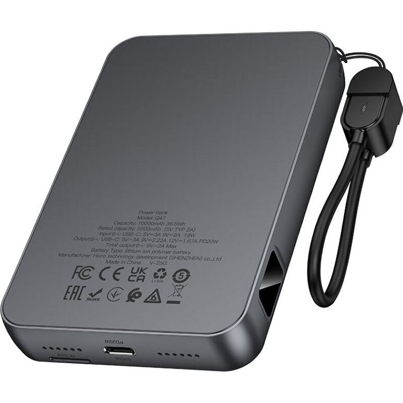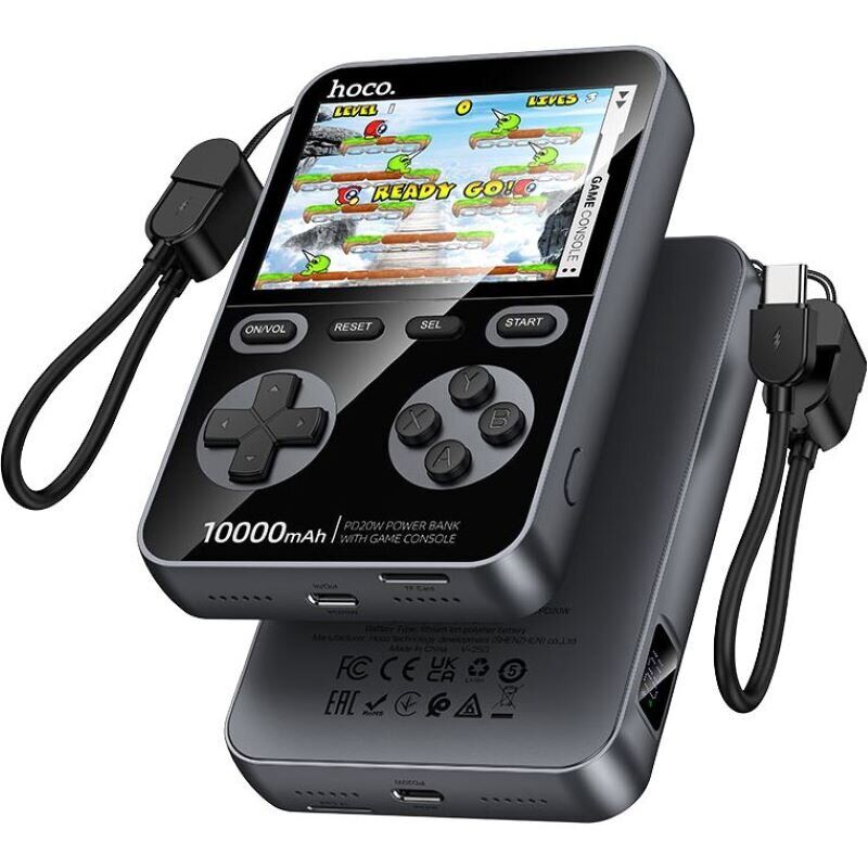 Внешний аккумулятор с игровой консолью Hoco Q47 2 in 1 PD20W + QC3.0 (10000mAh) — это универсальное устройство, которое сочетает мощный пауэрбанк и встроенную портативную консоль для развлечений в дороге. Благодаря поддержке современных протоколов быстрой зарядки PD и QC он подходит для смартфонов, планшетов, беспроводных наушников и других гаджетов, обеспечивая стабильную подачу энергии и надежную работу. Огнестойкий корпус из ABS и PC повышает безопасность при ежедневном использовании, а литий-ионный полимерный аккумулятор гарантирует долговечность. Цифровой дисплей отображает уровень заряда в процентах, позволяя точно контролировать остаток энергии. А встроенная игровая консоль с 1500 играми превращает пауэрбанк в полезный гаджет для отдыха, поездок и ожидания.