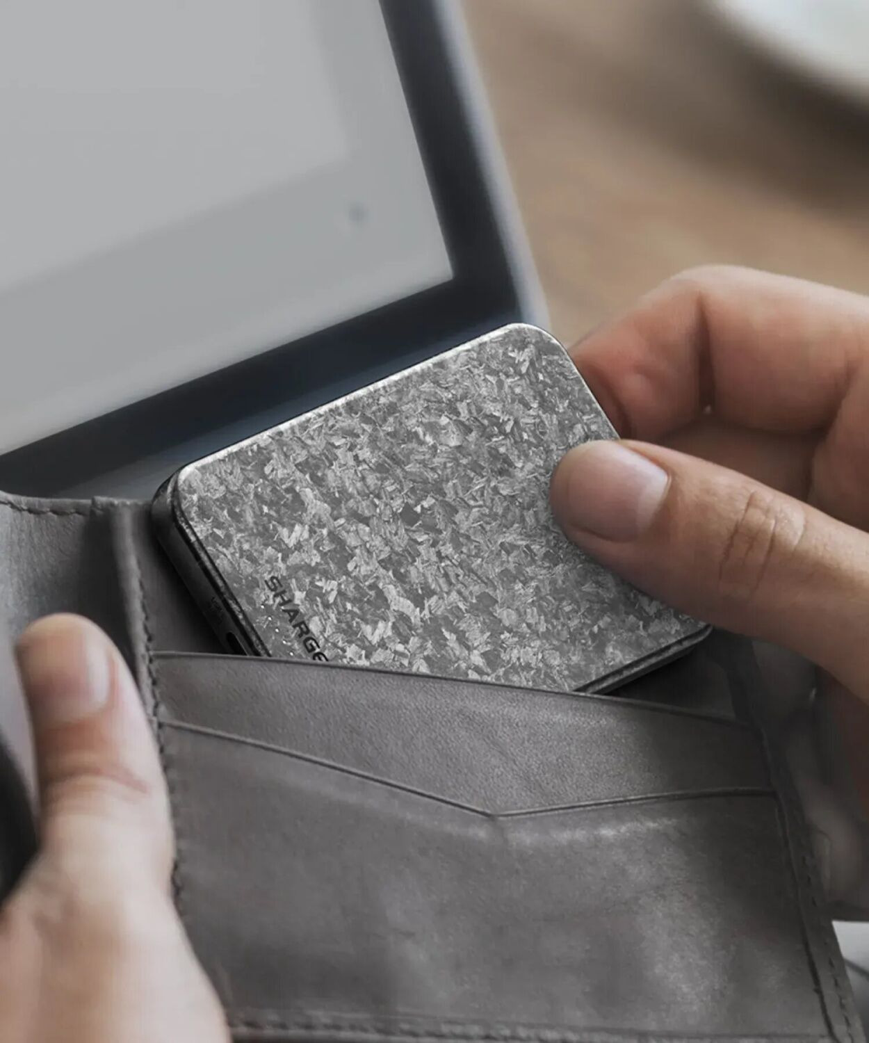 Внешний аккумулятор Sharge Carbon Mag 20W сочетает компактные размеры и функциональность, подходящую для использования с современными мобильными устройствами, поддерживающими беспроводную зарядку. Емкость 5000 мАч обеспечивает дополнительный ресурс энергии, которого достаточно для поддержания работоспособности смартфона в течение дня или частичной подзарядки других гаджетов. Магнитное крепление позволяет точно совмещать аккумулятор с устройством, обеспечивая стабильное положение во время зарядки без необходимости удерживать его вручную. Корпус выполнен с использованием карбоновых элементов, что делает конструкцию более легкой и устойчивой к повседневным воздействиям. Поддержка проводной зарядки мощностью до 20 Вт через порт позволяет быстрее восполнять заряд совместимых устройств. Также предусмотрена возможность беспроводной зарядки, что упрощает использование без лишних кабелей. Светодиодные индикаторы отображают текущий уровень заряда, помогая своевременно определить необходимость подзарядки самого аккумулятора. Благодаря компактному форм-фактору устройство удобно размещается в сумке или кармане, не занимая много места и оставаясь под рукой.
