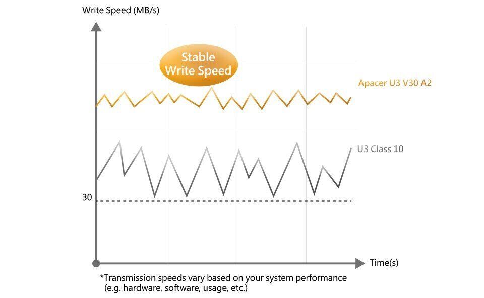 • Соответствие стандарту V30 гарантирует минимальную скорость записи 30 МБ/с для стабильной записи видео;