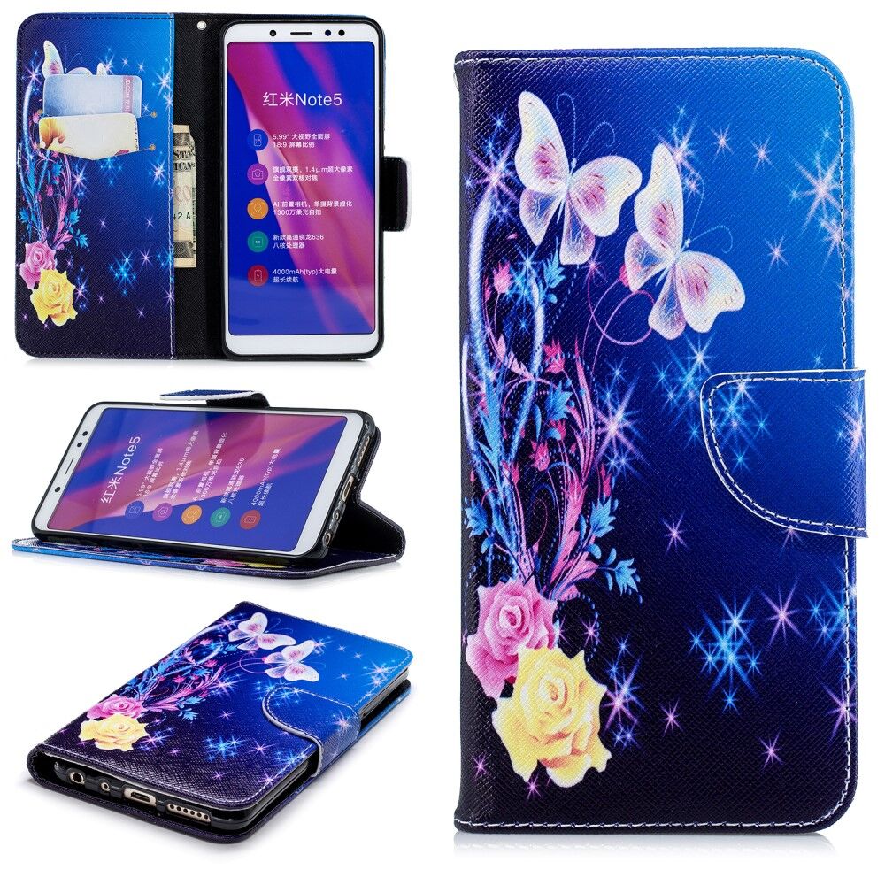 Чехол с рисунком Deexe Color Wallet для Xiaomi Redmi Note 5 / Note 5 Pro - Elegant Butterflies
