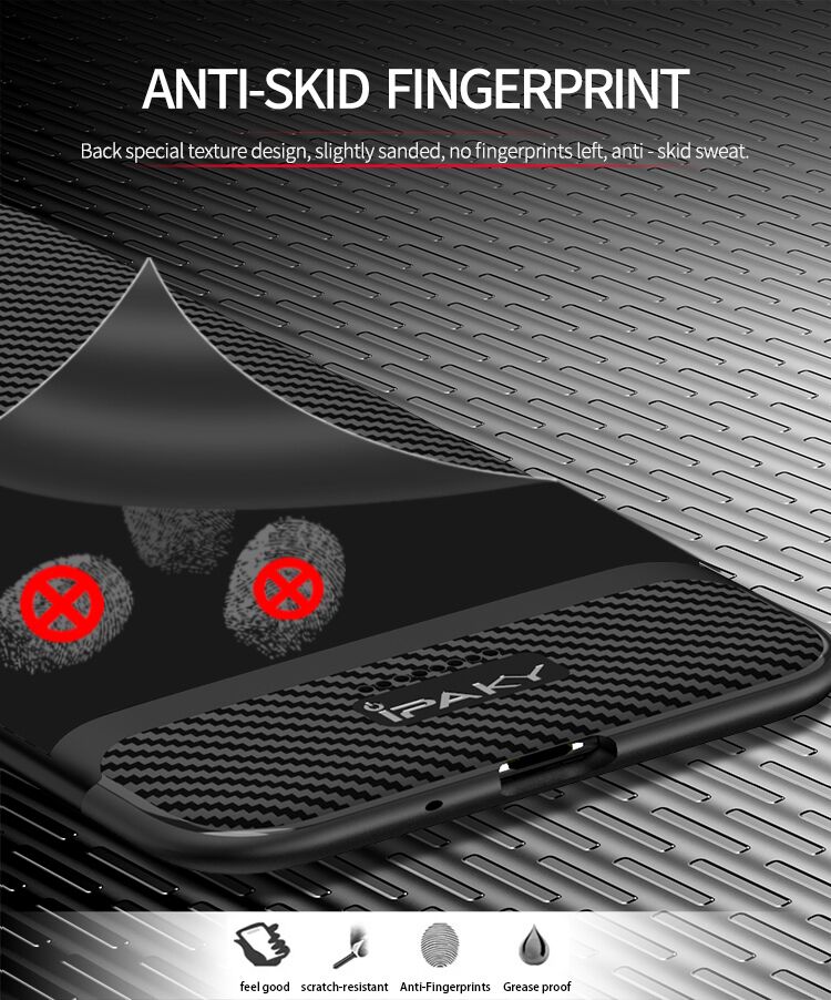 IPAKY Carbon Fiber – это сверхнадёжный чехол-накладка для Xiaomi Redmi 6, способный оградить поверхности как от царапин и потёртостей, так и более серьёзных повреждений, существенно смягчая силу удара в случае падения с высоты. Тому способствует двусоставная компоновка аксессуара, где на эластичную силиконовую основу сверху надевается жесткий бампер из поликарбоната. В дополнение, спинка аксессуара имеет приятное на ощупь карбоновое покрытие, не сохраняющее отпечатки и не скользящее в руках.
