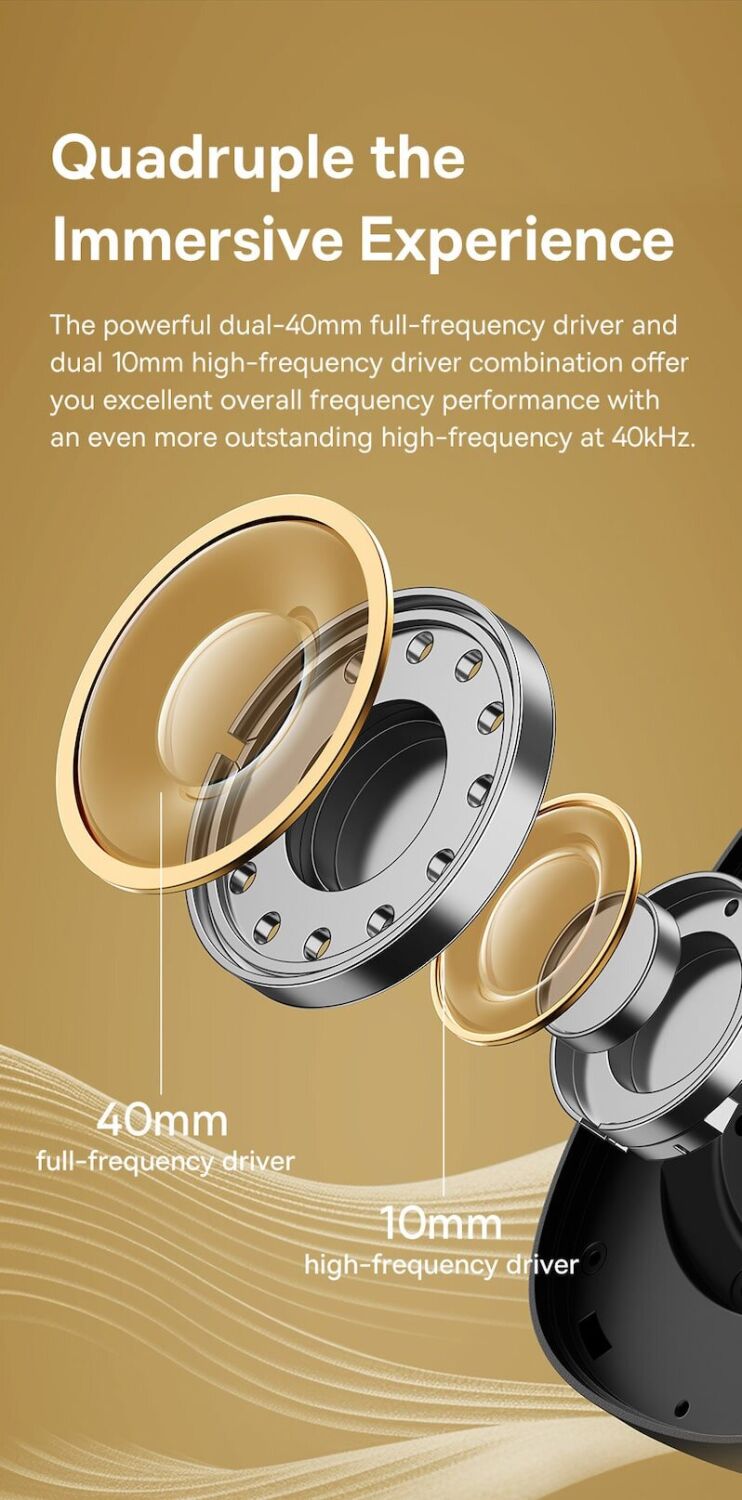 • 40-миллиметровые динамики с поддержкой LHDC Audio Decoding передают звук с богатым диапазоном от 20 до 40 кГц;