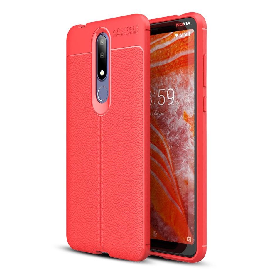 Защитный чехол Deexe Leather Cover для Nokia 3.1 Plus - Red