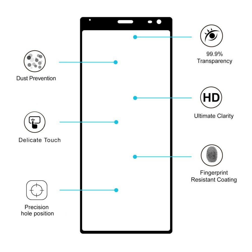 HAT PRINCE Full Glue Cover – это уникальный продукт, выполненный из закаленного стекла с твёрдостью 9H и предназначенный для защиты экрана Sony Xperia 10 Plus от грязи, царапин, потертостей и прочих неприятностей, возникающих в процессе активного использования. Благодаря тому, что клей здесь нанесён по всей тыльной поверхности, установка происходит максимально легко, достигается лучшая фиксация и отсутствие пузырей. Изделие изготавливается в точном соответствии с конструкцией смартфона и будет полностью закрывать округлый экран, повторяя его изгибы. Также по периметру имеется аккуратная цветная рамка, которая будет сливаться с родной поверхностью устройства, делая стекло практически неотличимым.