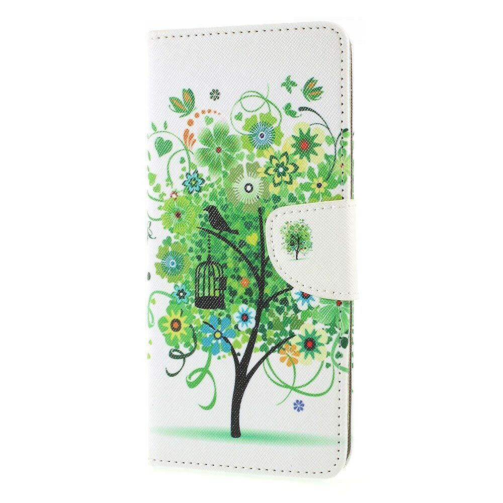 Чехол с рисунком Deexe Color Wallet для Sony Xperia 1 - Green Flower Tree
