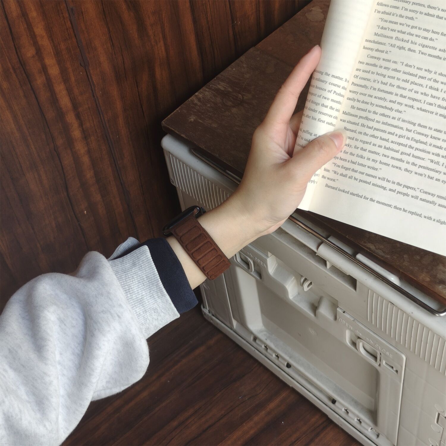 Ремешок Reframe Suede Leather для Apple Watch 42 (Series 10/11) / 41 / 40 / SE 40 / 38 изготовлен из замши с мягкой бархатистой поверхностью и аккуратной фактурой, которая придаёт аксессуару сдержанный и опрятный внешний вид. Материал гибкий, приятный на ощупь и хорошо держит форму при регулярном использовании, благодаря чему аксессуар гармонично сочетается как с повседневной, так и с более строгой одеждой. Встроенная магнитная система фиксации позволяет закрепить часы без классической пряжки, упрощая процесс надевания и снятия. Длина регулируется плавно, что даёт возможность точно подстроить посадку без отверстий и фиксированных шагов. Внешняя часть дополнена квадратным рельефным рисунком, который добавляет конструкции визуальную глубину и подчёркивает аккуратный дизайн. Такой аксессуар подойдёт для замены штатного браслета и обновления внешнего вида устройства без сложной установки.