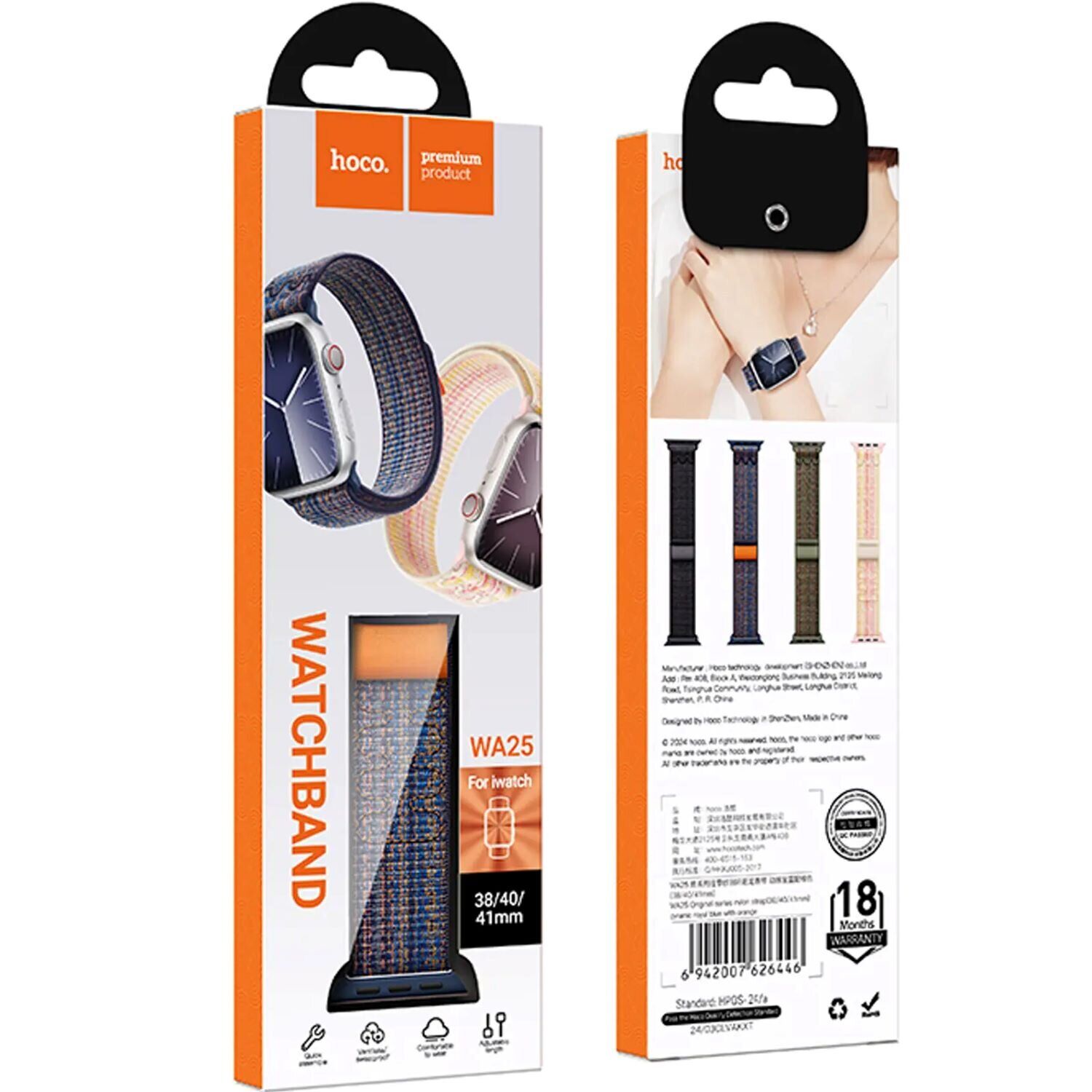 Ремешок Hoco WA25 для Apple Watch 46 / 45 / 44 / SE 44 / 42 (Series 1-3) / Ultra / Ultra 2 / Ultra 3 — это практичное и надежное решение для тех, кто ищет комфорт и долговечность в повседневном использовании смарт-часов. Мягкий нейлон с плотным, но дышащим плетением обеспечивает удобную посадку на запястье в течение всего дня, не вызывая раздражения. Легкая конструкция делает аксессуар оптимальным выбором для занятий спортом, активных прогулок и длительной носки. Благодаря продуманной застежке-липучке ремешок можно быстро отрегулировать под любую ситуацию — от плотной фиксации до более свободного ношения. Он сочетает функциональность, приятные тактильные ощущения и аккуратный внешний вид, который гармонично смотрится с различными стилями, подчеркивая индивидуальность владельца.