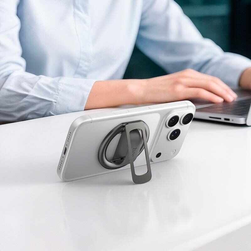 Магнитное кольцо-держатель Hoco GH10 — это компактный и практичный аксессуар, который объединяет функции надёжного держателя и удобной подставки для смартфона. Благодаря мощным магнитам N52 устройство обеспечивает стабильную фиксацию, позволяя комфортно пользоваться телефоном одной рукой или устанавливать его на различных поверхностях. Корпус выполнен из прочного алюминиевого сплава с анодированным покрытием, что повышает устойчивость к износу и сохраняет привлекательный внешний вид. Аксессуар совместим с iPhone начиная с 12 серии, а также с другими смартфонами при использовании магнитной пластины, которая идет в комплекте. Лёгкий и компактный дизайн делает его удобным для повседневного использования дома, в офисе или в дороге.