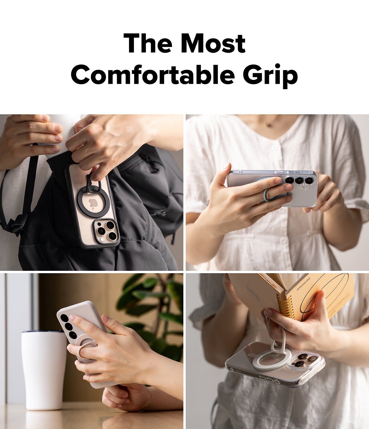 Магнитное кольцо-держатель Ringke Dual Magnetic Silicone Ring — это компактный и практичный аксессуар для смартфона, который сочетает в себе функции надежного держателя и универсального магнитного крепления. Благодаря двусторонним неодимовым магнитам устройство легко фиксируется как на смартфоне, так и на металлических поверхностях, позволяя использовать его для просмотра видео, съемки или работы без рук в любых условиях. Легкий и тонкий корпус толщиной всего 3,2 мм практически не увеличивает габариты устройства, а мягкое силиконовое покрытие обеспечивает комфортный хват и предотвращает скольжение. Кольцо совместимо с магнитными чехлами, а для обычных моделей предусмотрена металлическая пластина, входящая в комплект. Продуманная конструкция делает аксессуар удобным для повседневного использования — дома, в автомобиле, на тренировках или в путешествиях.