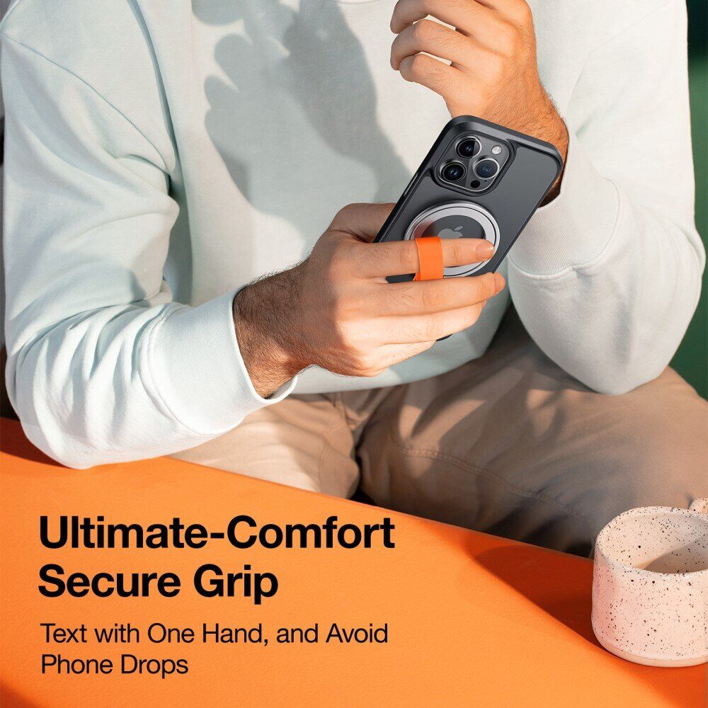Магнитное кольцо-держатель TORRAS Ostand Ring – это универсальный аксессуар, сочетающий в себе удобство, надежность и современный функциональный дизайн. Благодаря встроенному вращающемуся кольцу с возможностью поворота на 360°, вы можете комфортно удерживать смартфон одной рукой, а также использовать кольцо в качестве подставки для просмотра видео, чтения или видеозвонков. Аксессуар совместим с технологией MagSafe, что позволяет надежно крепить его к совместимым чехлам, автомобильным держателям или другим магнитным поверхностям, а также использовать беспроводную зарядку без необходимости снимать аксессуар. Корпус выполнен из прочных материалов – металла и силикона, что обеспечивает устойчивость к ежедневным нагрузкам и износу. Эргономичная форма и минималистичный дизайн позволяют использовать кольцо-держатель без лишнего объема, он не мешает при ношении устройства в кармане или сумке.