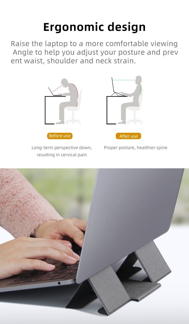 • Подходит для офиса, дома и поездок, создавая комфортный угол наклона для печати, общения или просмотра контента.