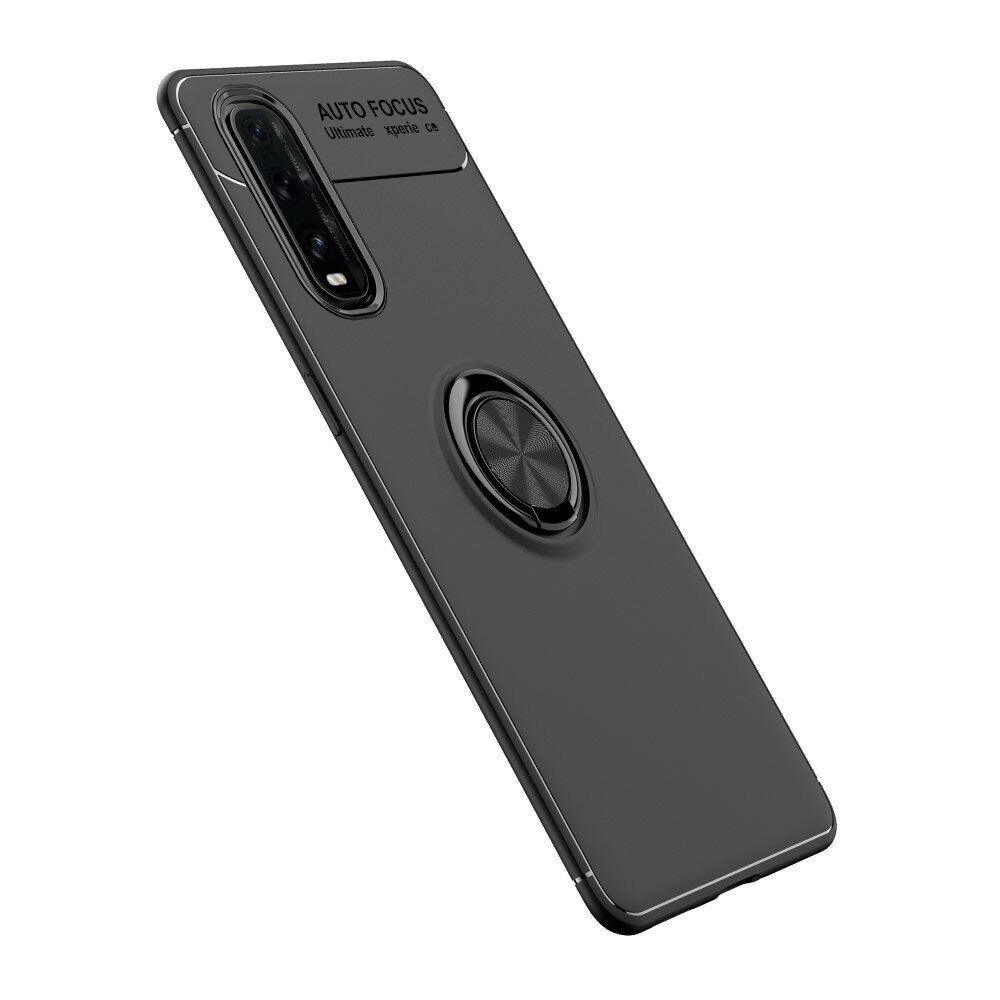 Сзади на спинке имеется специальный металлический элемент с кольцом-подставкой, позволяющий чехлу выполнять сразу несколько удобных функций: во-первых, позволяет фиксировать мобильное устройство на магнитной панели автомобильного держателя, без необходимости клеить специальную наклейку; во-вторых, откинув кольцо на него можно опереть смартфон, как на подставку; ну и в-третьих, за это кольцо смартфон можно удерживать на пальце или банально повесить куда-нибудь.