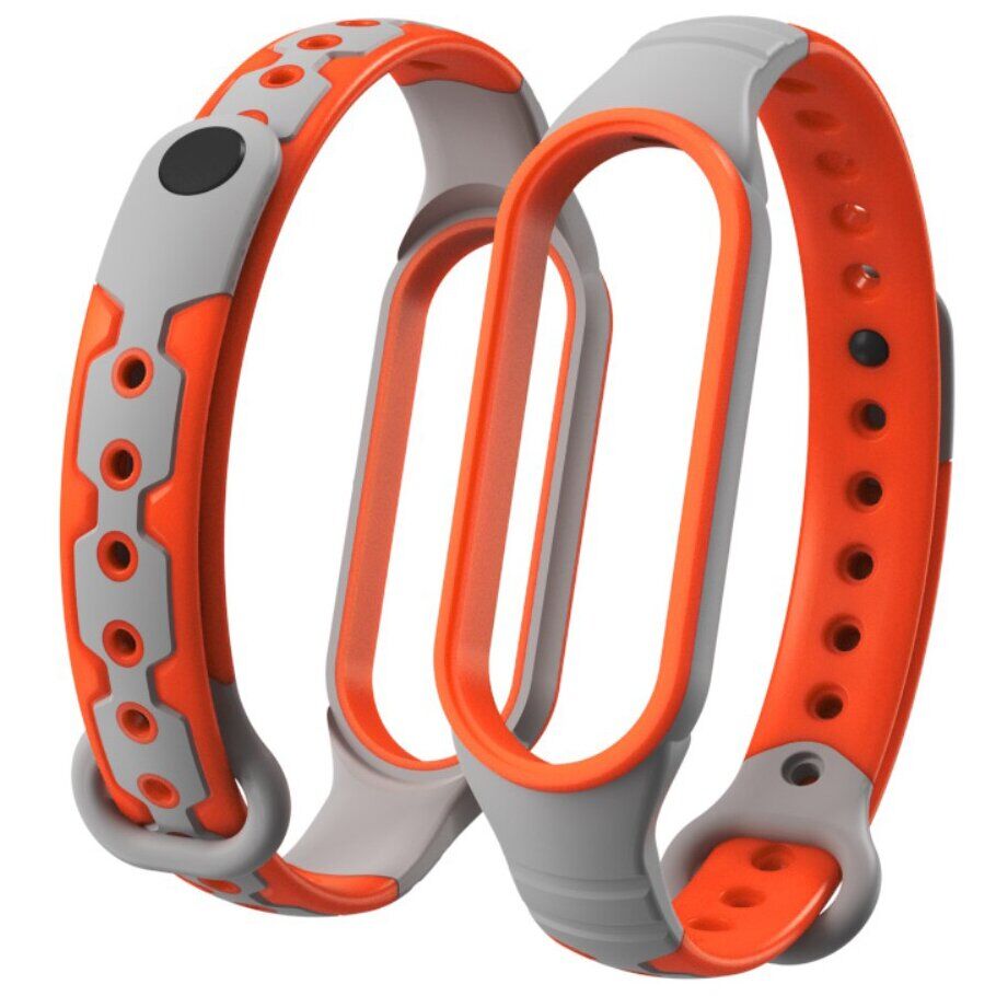 Ремешок Deexe Geometric Design для Xiaomi Mi Band 5 / Mi Band 6 - Grey / Red