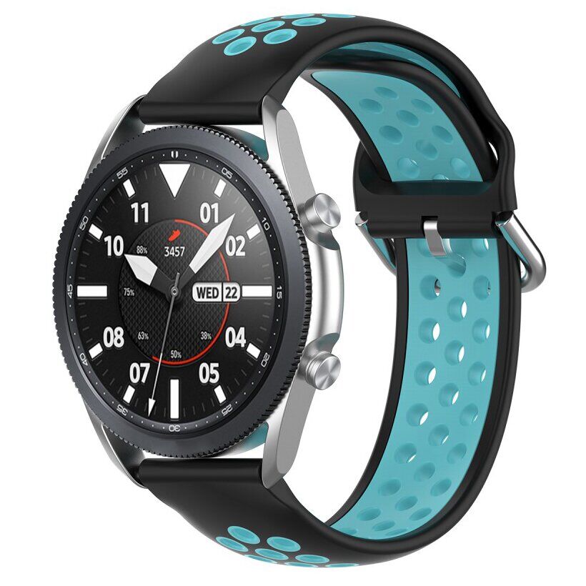 Ремешок Deexe Dual Color для Samsung Galaxy Watch 3 (41mm) замечательное решение для замены штатного, идущего в комплекте с умными часами. Он выполнен в из эластичного силикона, приятного на ощупь и не доставляющего дискомфорт во время ношения. Кроме того, аксессуар оснащён перфорацией, что гарантирует свободное поступление воздуха к запястью, позволяя ему "дышать". Стильный красочный дизайн отлично сочетается с яркими вещами и сможет замечательно выделить ваши смарт-часы на руке.