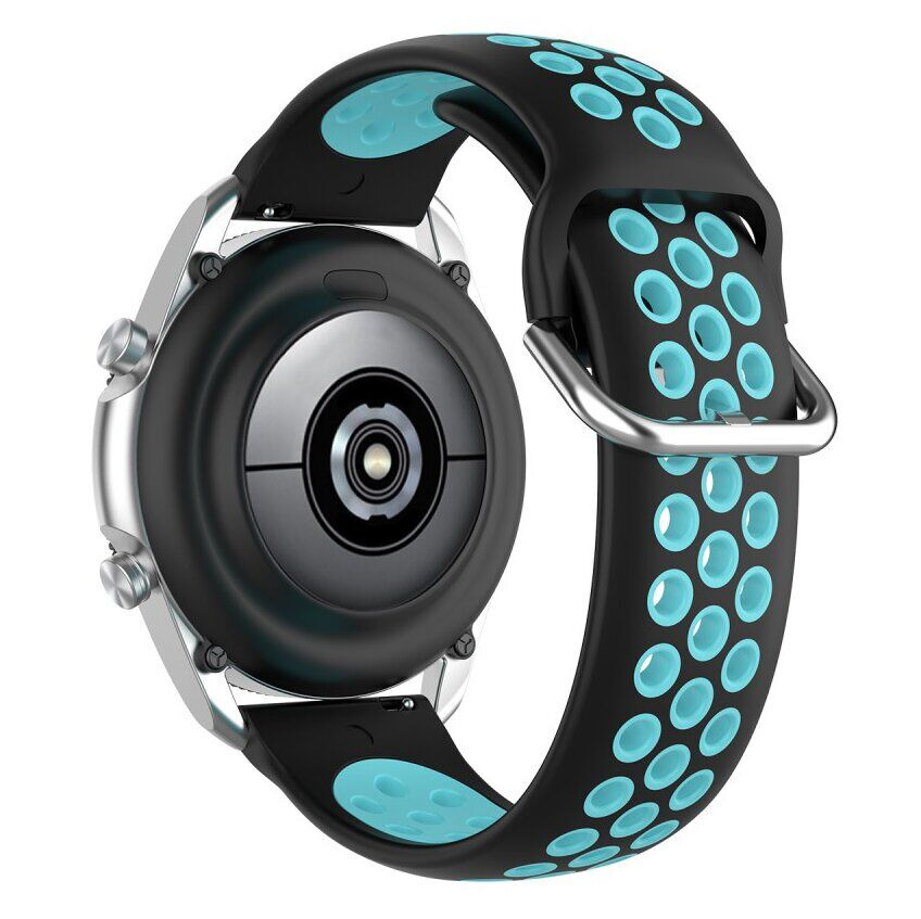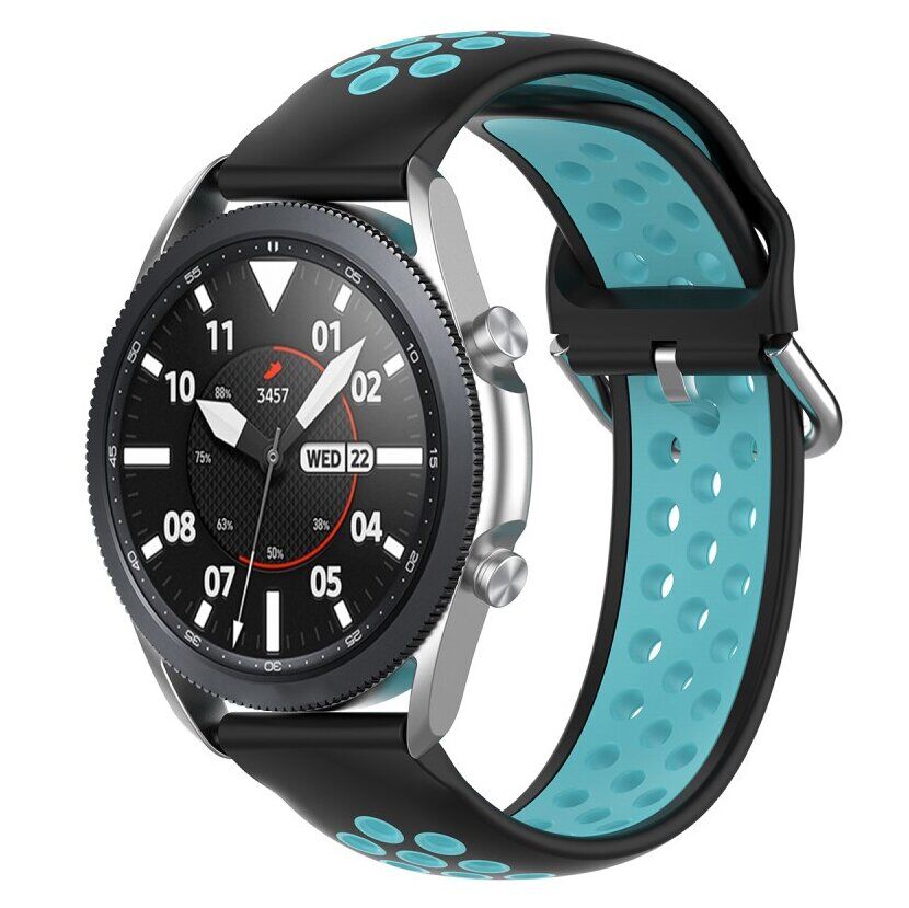 Ремешок Deexe Dual Color для Samsung Galaxy Watch 3 (45mm) замечательное решение для замены штатного, идущего в комплекте с умными часами. Он выполнен в из эластичного силикона, приятного на ощупь и не доставляющего дискомфорт во время ношения. Кроме того, аксессуар оснащён перфорацией, что гарантирует свободное поступление воздуха к запястью, позволяя ему "дышать". Стильный красочный дизайн отлично сочетается с яркими вещами и сможет замечательно выделить ваши смарт-часы на руке.