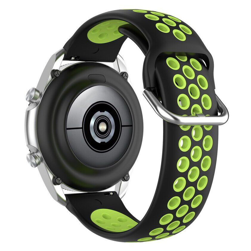Ремешок Deexe Dual Color для Samsung Galaxy Watch 3 (45mm) замечательное решение для замены штатного, идущего в комплекте с умными часами. Он выполнен в из эластичного силикона, приятного на ощупь и не доставляющего дискомфорт во время ношения. Кроме того, аксессуар оснащён перфорацией, что гарантирует свободное поступление воздуха к запястью, позволяя ему "дышать". Стильный красочный дизайн отлично сочетается с яркими вещами и сможет замечательно выделить ваши смарт-часы на руке.