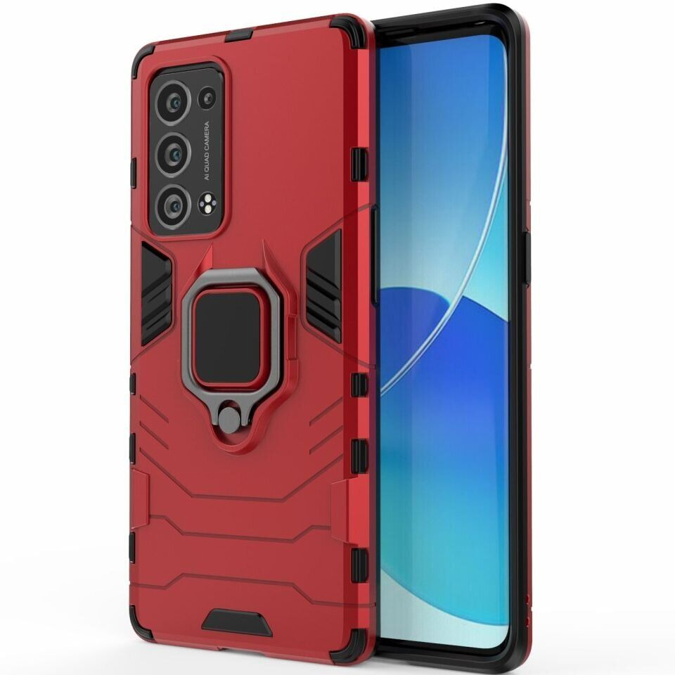 Чехол с подставкой Deexe Hybrid Case для OPPO Reno 6 Pro / 6 Pro Plus - Red