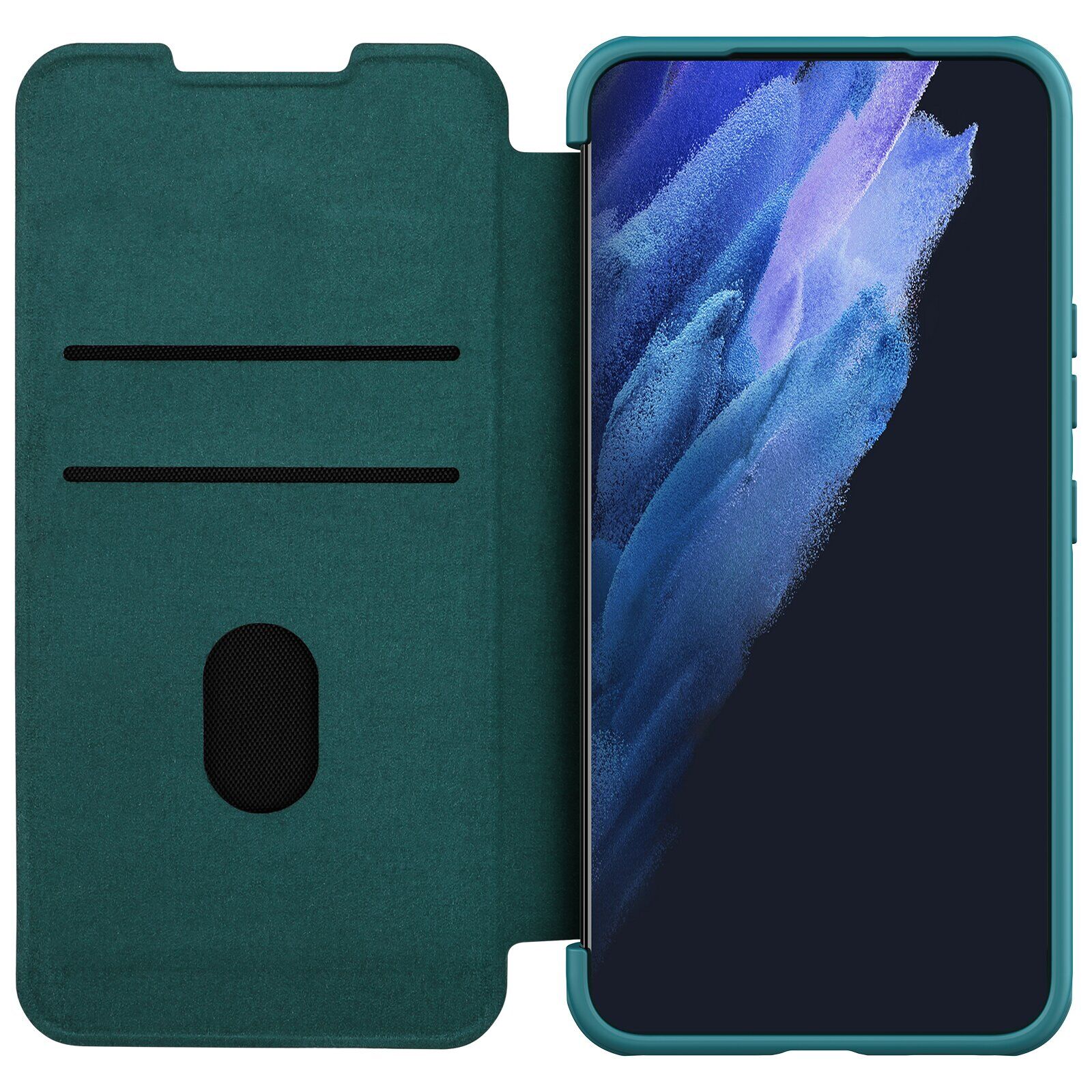 Qin Pro – это новое интересное решение от компании NILLKIN. Чехол выполнен в стандартном форм-факторе "книжка", но дополнен специальным щитком на спинке, которым можно "прикрыть" тыльную камеру Samsung Galaxy S22 (S901), когда та не используется, ограждая объектив не только от повреждений, но и от "залапывания" пальцами. Внешнее покрытие чехла изготовлено из качественного текстурированного полиуретана, который элегантно выглядит и не трескается в процессе эксплуатации. Конструкция дополнена прочным пластиковым каркасом, плотно фиксирующим корпус внутри и хорошо оберегающим его от ударов. Для портов и клавиш смартфона производитель предусмотрел необходимые отверстия, потому удобство их использования не пострадает. Также на внутренней части крышки можно найти небольшой кармашек для пластиковой карты.