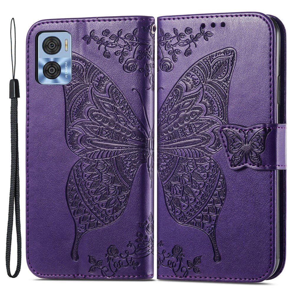 Чехол-книжка с рисунком UniCase Butterfly Pattern для Motorola Moto E22 - Purple