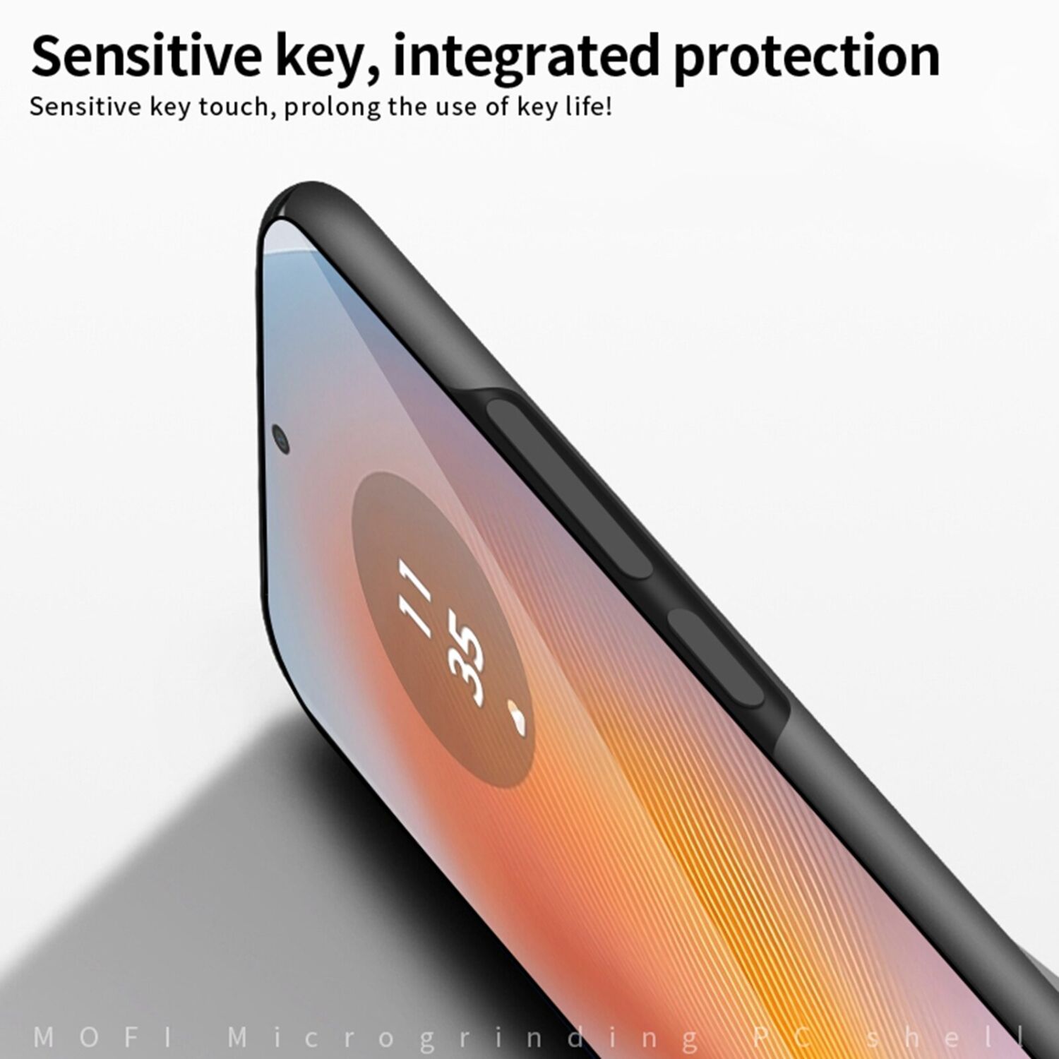 Чехол MOFI Slim Shield представляет собой ультратонкую защиту для вашего Motorola Edge 50 Fusion, созданную для надежного сохранения внешнего вида устройства. Этот аксессуар изготовлен из высокопрочного поликарбоната, который обеспечивает необходимую жесткость и защиту от повседневных механических воздействий, таких как царапины или удары. Благодаря своему тонкому и легкому исполнению, чехол плотно прилегает к корпусу, защищая его боковые и задние стороны, не добавляя при этом значительного объема или веса.