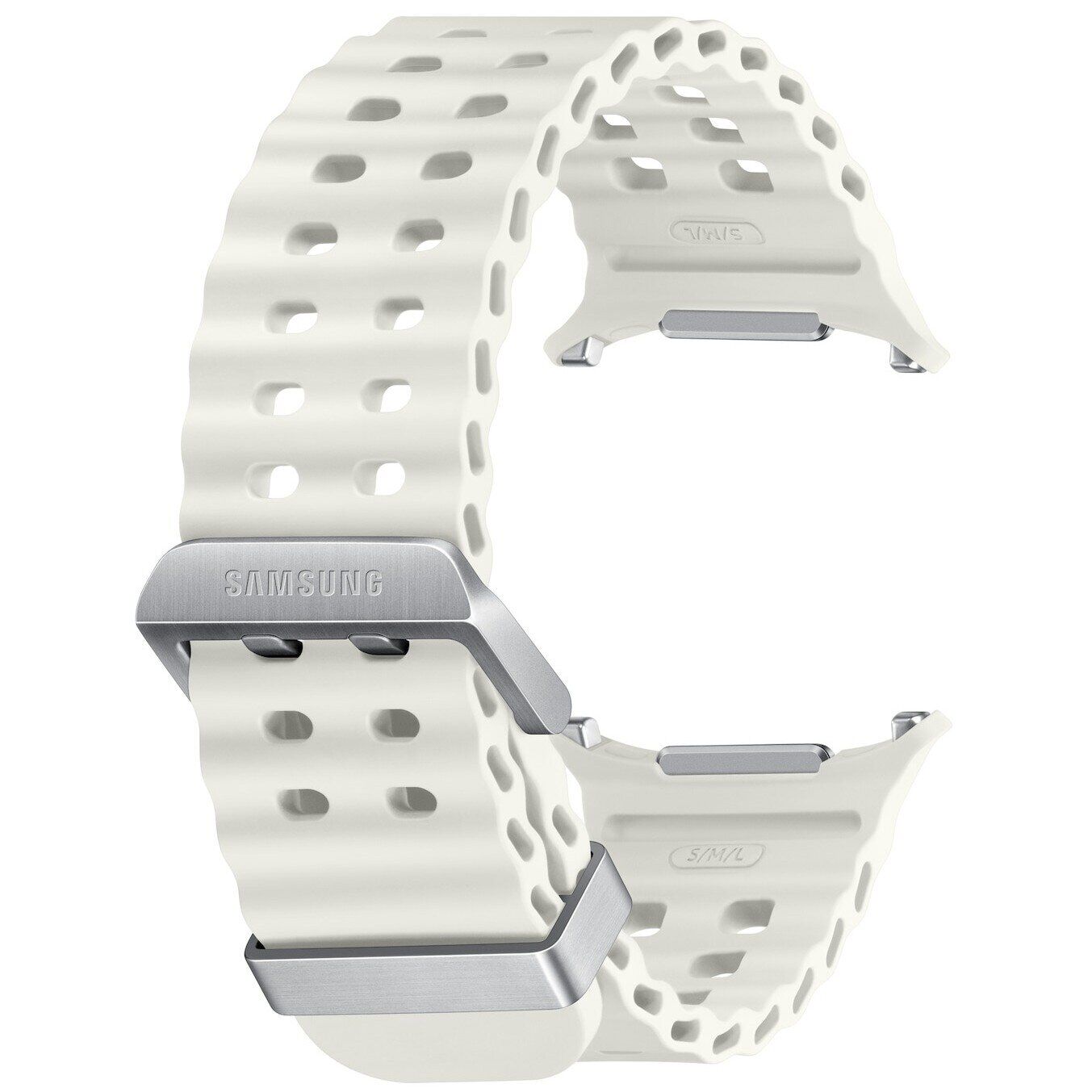 Оригинальный ремешок Marine Band для Samsung Galaxy Watch Ultra (47mm) / Ultra (2025) разработан с учётом потребностей активных пользователей. Перфорированная поверхность и волнообразная форма способствуют быстрому отводу воды, что особенно удобно во время тренировок и занятий водными видами спорта. Лёгкая титановая застёжка гармонично дополняет продуманную конструкцию, обеспечивая комфорт при ношении и снижая общий вес аксессуара.