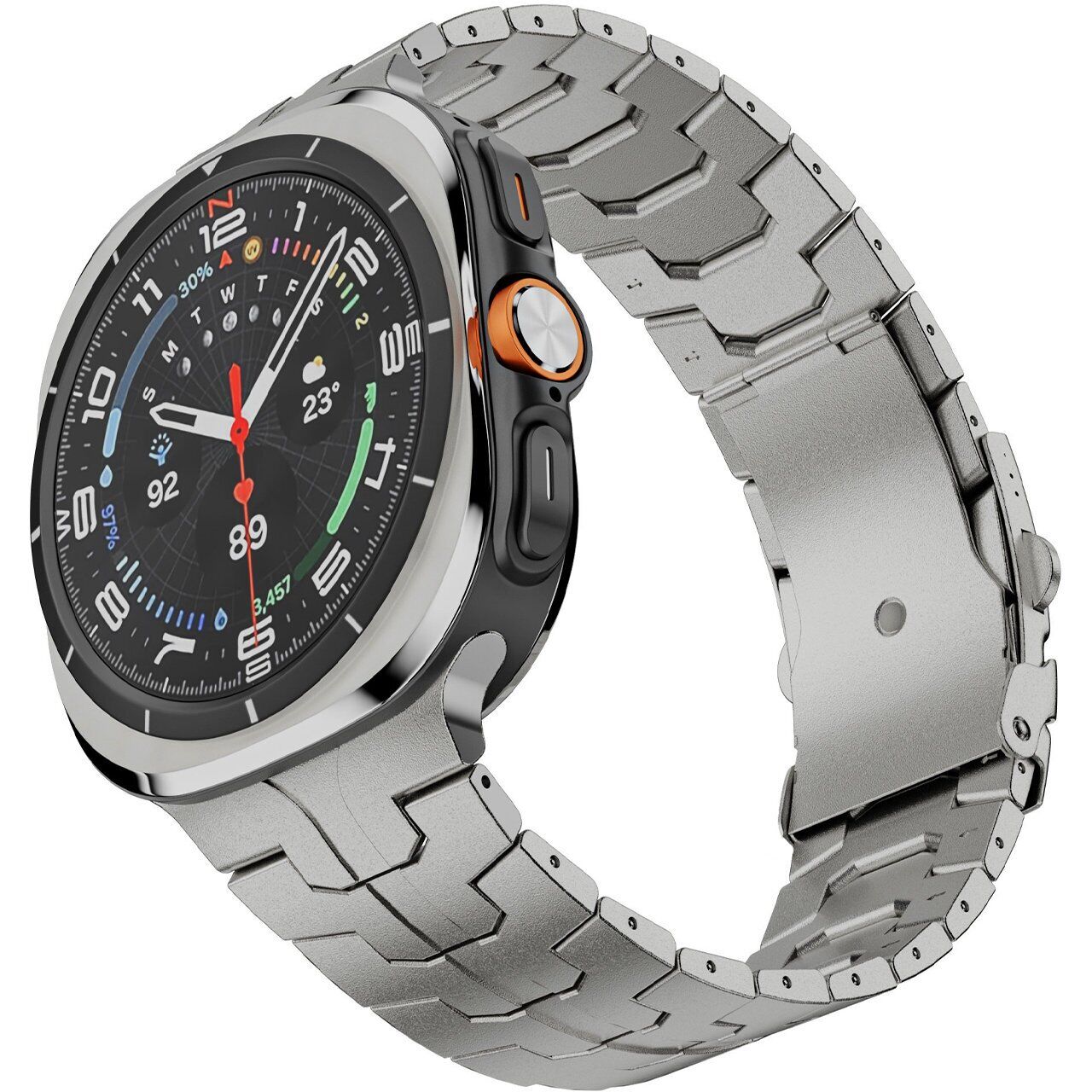 Ремешок Reframe Titanium Band для Samsung Galaxy Watch Ultra (47mm) / Ultra (2025) – это стильное и надежное решение для тех, кто ценит премиальные материалы и практичность в каждой детали. Модель изготовлена из титана, что обеспечивает не только малый вес и устойчивость к внешним воздействиям, но и привлекательный внешний вид, соответствующий современным тенденциям дизайна умных часов. Конструкция продумана до мелочей: от системы крепления до надёжной застёжки, гарантирующей плотную и безопасную фиксацию на запястье. Ремешок адаптирован под все актуальные версии Galaxy Watch 8, включая Classic, благодаря чему его легко интегрировать в любую конфигурацию устройств.