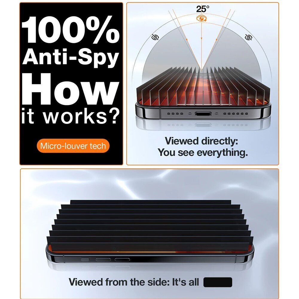 Защитное стекло TORRAS GlassGo Privacy для iPhone 16 Pro Max обеспечивает надежную защиту экрана и сохраняет конфиденциальность вашего контента. Специальный privacy-фильтр ограничивает угол обзора примерно до 25°, скрывая изображение от окружающих в транспорте, офисе или других публичных местах. Стекло выполнено из прочного аэрокосмического материала с твердостью 9H+, выдерживает удары, падения и многочисленные тесты на царапины. Точные 3D-края гарантируют плотное прилегание, а олеофобное покрытие поддерживает чистоту экрана. Фирменная система установки TORRAS позволяет наклеить стекло с первого раза без пузырей и пыли.