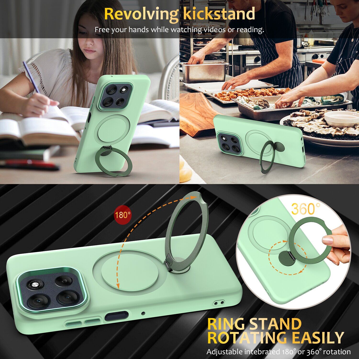 • Металлическое кольцо-подставка поддерживает вращение на 180° и 360°, позволяя удобно использовать устройство для просмотра контента, чтения или видеосвязи;