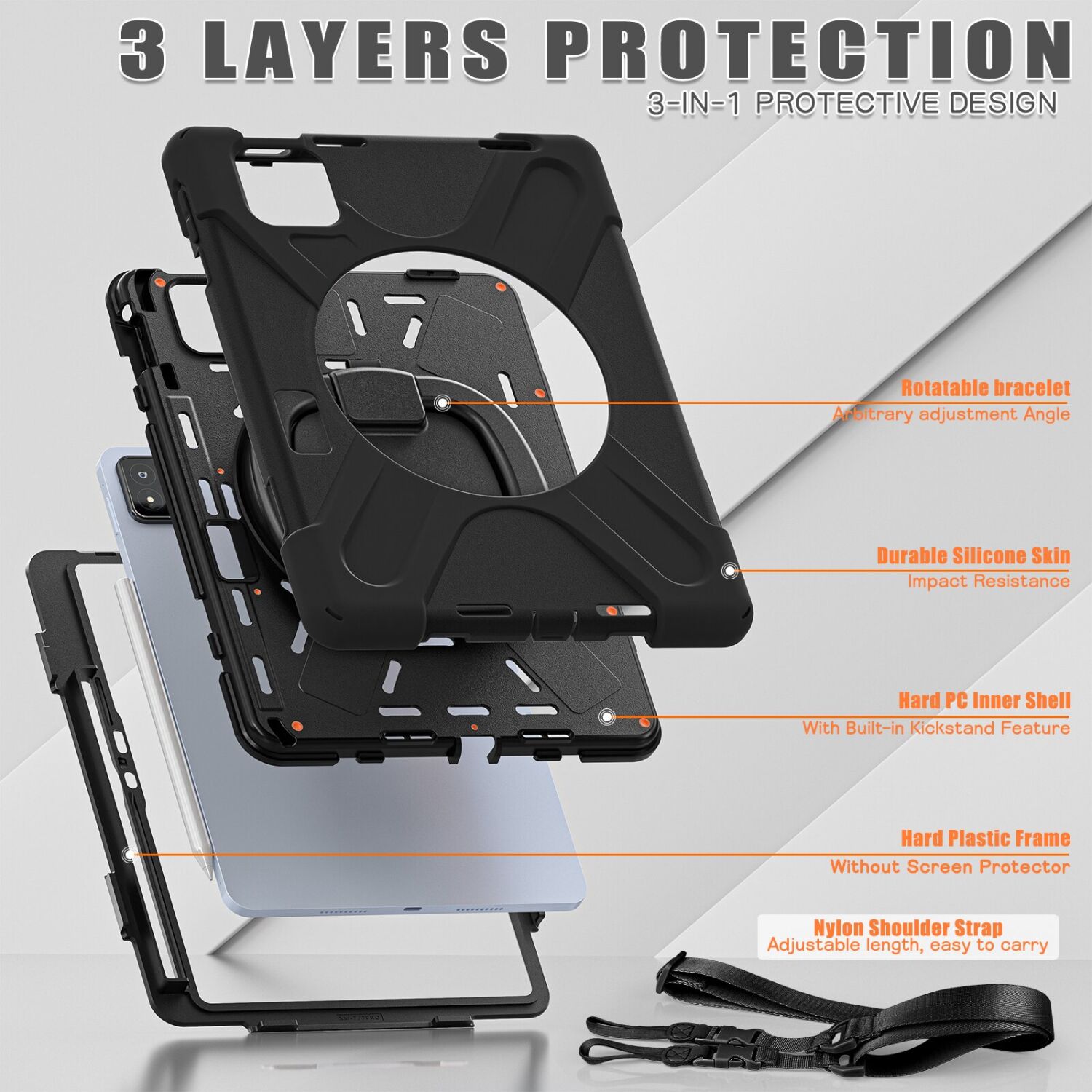 Защитный чехол Deexe Hand Grip для Xiaomi Pad 7 / Pad 7 Pro представляет собой революционное сочетание трех слоев защиты, которые обеспечивают максимальный уровень безопасности для вашего планшета. Структура чехла включает в себя твердую пластиковую рамку, обрамляющую планшет со стороны экрана, внутреннюю оболочку спинки из поликарбоната и мягкую силиконовую внешнюю оболочку. Благодаря этой комбинации, чехол отлично рассеивает и поглощает удары, сохраняя устройство в целости и сохранности. Он предлагает не только превосходную защиту, но и стильный дизайн, который поможет вам выделиться из толпы. Интегрированная вращающаяся подставка и отсек для стилуса делают этот чехол незаменимым аксессуаром для вашего устройства.