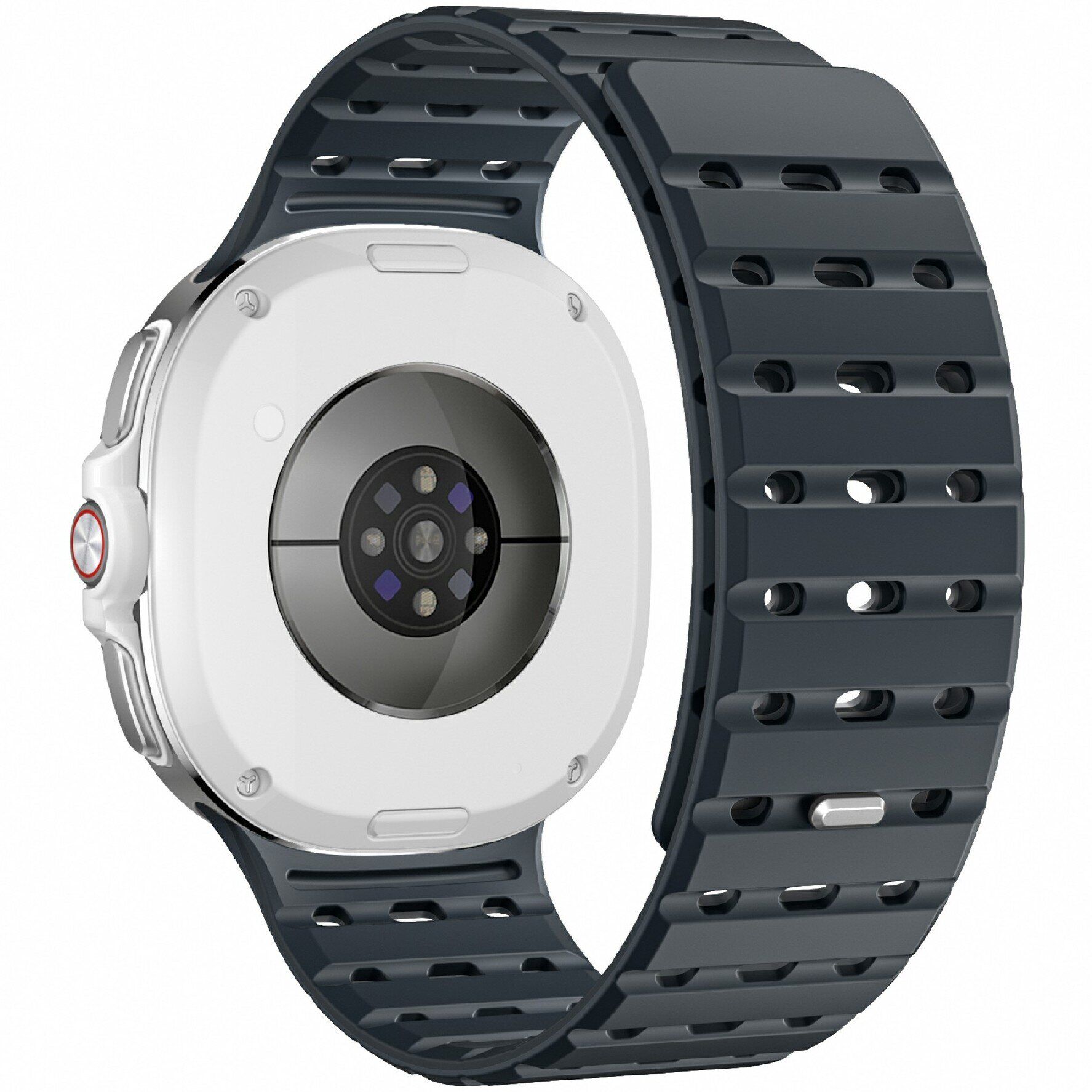 Ремешок Reframe Sport Band для Samsung Galaxy Watch 8 (40/44mm) / 8 Classic – это практичное решение для тех, кто ведёт активный образ жизни и ценит комфорт в деталях. Он выполнен из прочного, но мягкого на ощупь силикона с перфорированной структурой, которая способствует вентиляции и снижает накопление влаги при длительном ношении. Такой материал легко очищается и сохраняет форму даже при регулярной эксплуатации. Благодаря регулируемой длине, ремешок подходит для запястий разной ширины, обеспечивая плотную и комфортную посадку без давления. Быстросъёмный механизм позволяет заменить ремешок за несколько секунд – без необходимости использования инструментов. Он точно совместим с корпусом модели часов, плотно фиксируется в креплениях и не смещается в процессе движения. Модель универсальна по стилю и подходит как для тренировок, так и для повседневного использования. Ремешок представлен в разных цветовых решениях, чтобы вы могли выбрать ремешок, который лучше всего дополнит ваш стиль и образ.