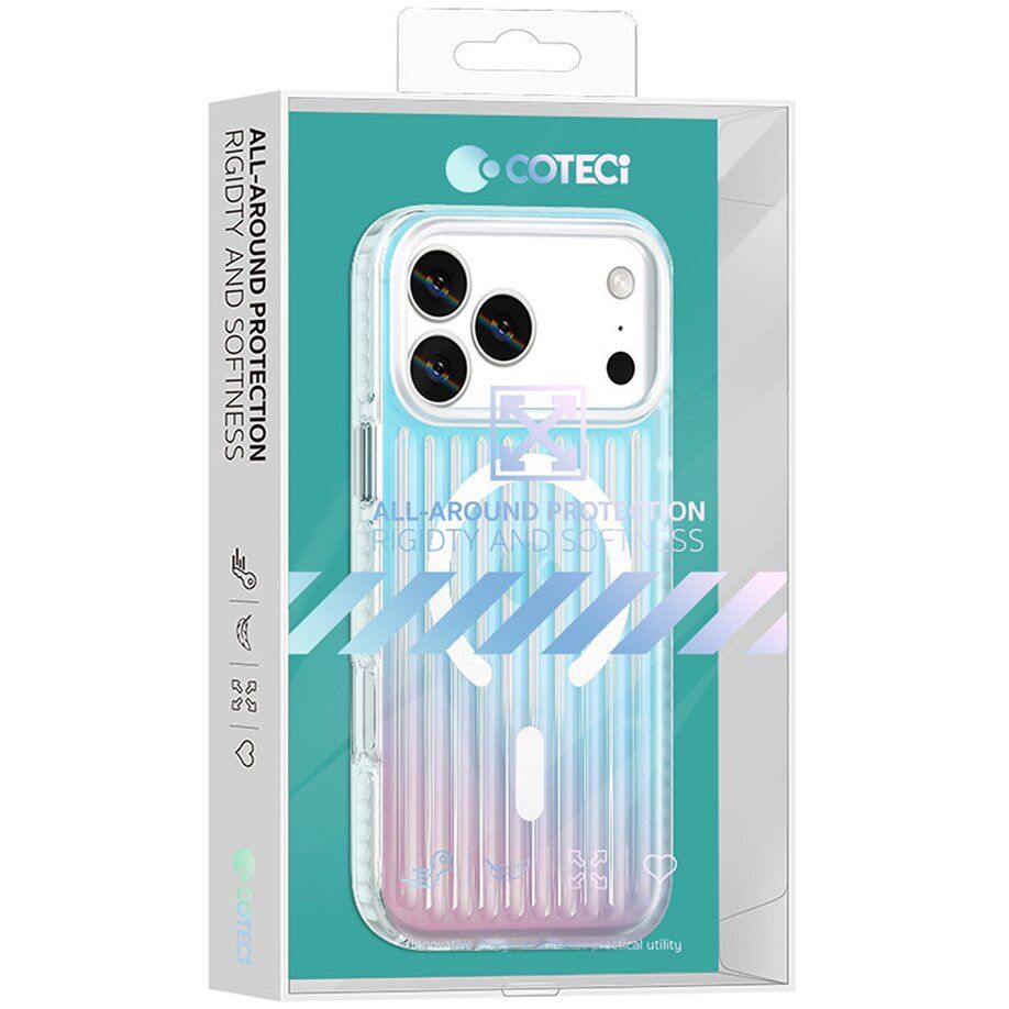 Защитный чехол COTECI Gradient Color для iPhone 17 выполнен с градиентным оформлением задней панели, которое меняет оттенок в зависимости от освещения и угла просмотра. Конструкция сочетает материалы TPE и TPU, что позволяет сохранить тонкий профиль устройства и снизить воздействие при случайных ударах. Полупрозрачная задняя часть с эффектом свечения придаёт корпусу смартфона выразительный внешний вид, не скрывая его форму. Конструкция с усиленными углами способствует снижению воздействия при падении. Встроенное магнитное кольцо поддерживает работу с аксессуарами MagSafe, включая магнитные зарядные устройства и крепления. Предусмотрены точные вырезы для блока камеры, динамиков и разъёма зарядки, а также отдельные накладки на кнопки управления. Форма аксессуара повторяет контуры смартфона, благодаря чему он плотно фиксируется на корпусе. Поверхность материала устойчива к появлению мелких следов эксплуатации и сохраняет внешний вид устройства.