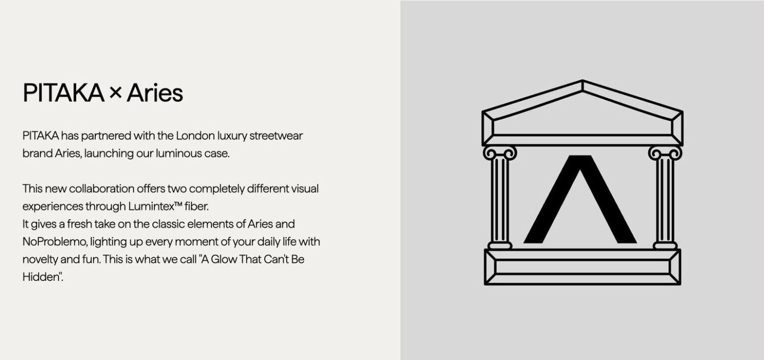 • Дизайн коллаборации PITAKA × Aries для выразительного стиля;