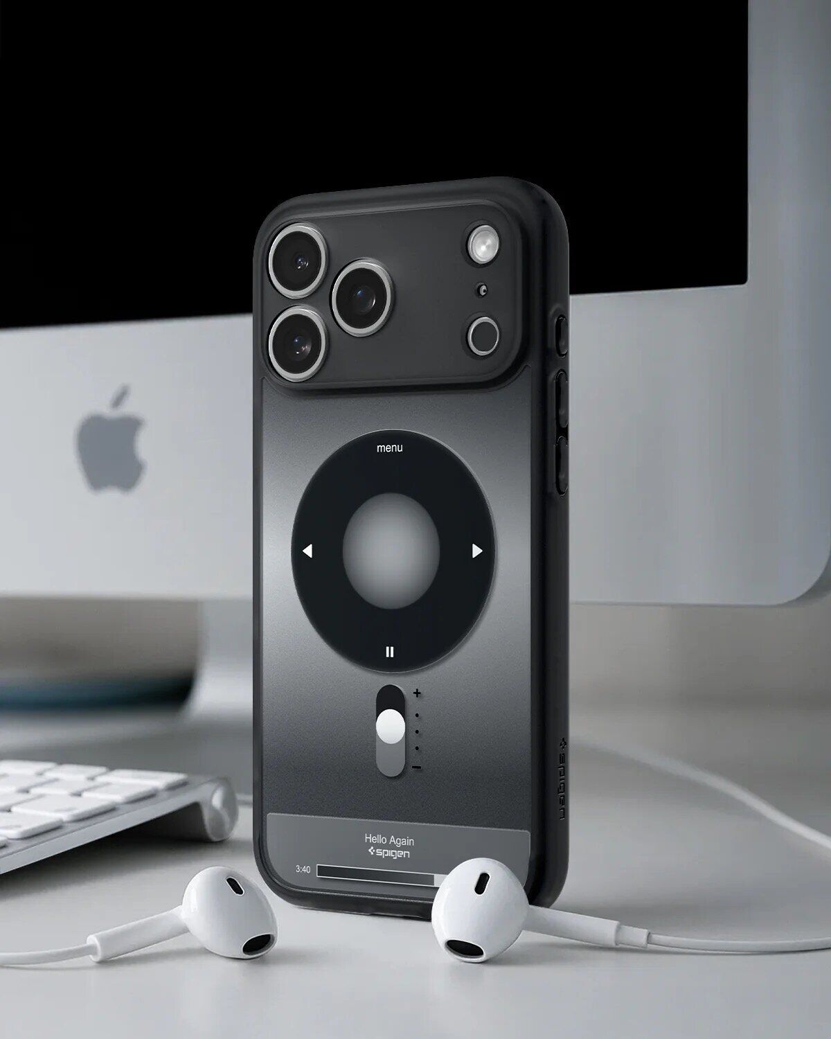 Защитный чехол Spigen Ultra Hybrid (MagFit) Classic для iPhone 17 Pro Max сочетает в себе узнаваемую эстетику классического дизайна и современные технологии защиты, создавая эффектный и надежный аксессуар для флагманского смартфона. Гибридная конструкция из прочного поликарбоната и эластичного TPU обеспечивает высокий уровень защиты корпуса от царапин, ударов и потертостей, при этом сохраняя тонкий профиль устройства. Дизайн чехла вдохновлен культовым iPod Classic и выполнен с детализированным принтом, что делает его выразительным и визуально уникальным. Технология Air Cushion эффективно снижает нагрузку при падениях, особенно в зонах углов. Особое внимание уделено модулю камеры и кнопке управления камерой: камера полностью закрыта защитной рамкой, а кнопка прикрыта тонким TPU-слоем, который сохраняет точную отзывчивость. Чехол полностью совместим с MagSafe и поддерживает беспроводную зарядку, обеспечивая комфортное использование без необходимости снимать аксессуар.