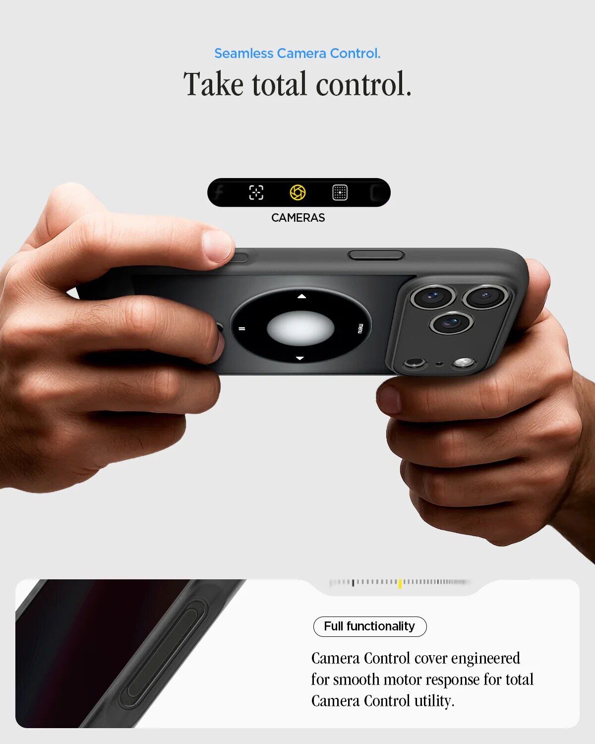 • Кнопка управления камерой защищена TPU-слоем с сохранением чувствительности;