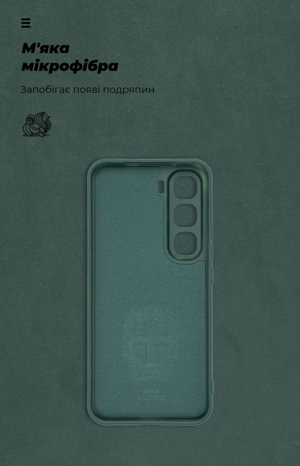 • Создает бортик по периметру лицевой панели, позволяя безопасно класть устройство экраном вниз.