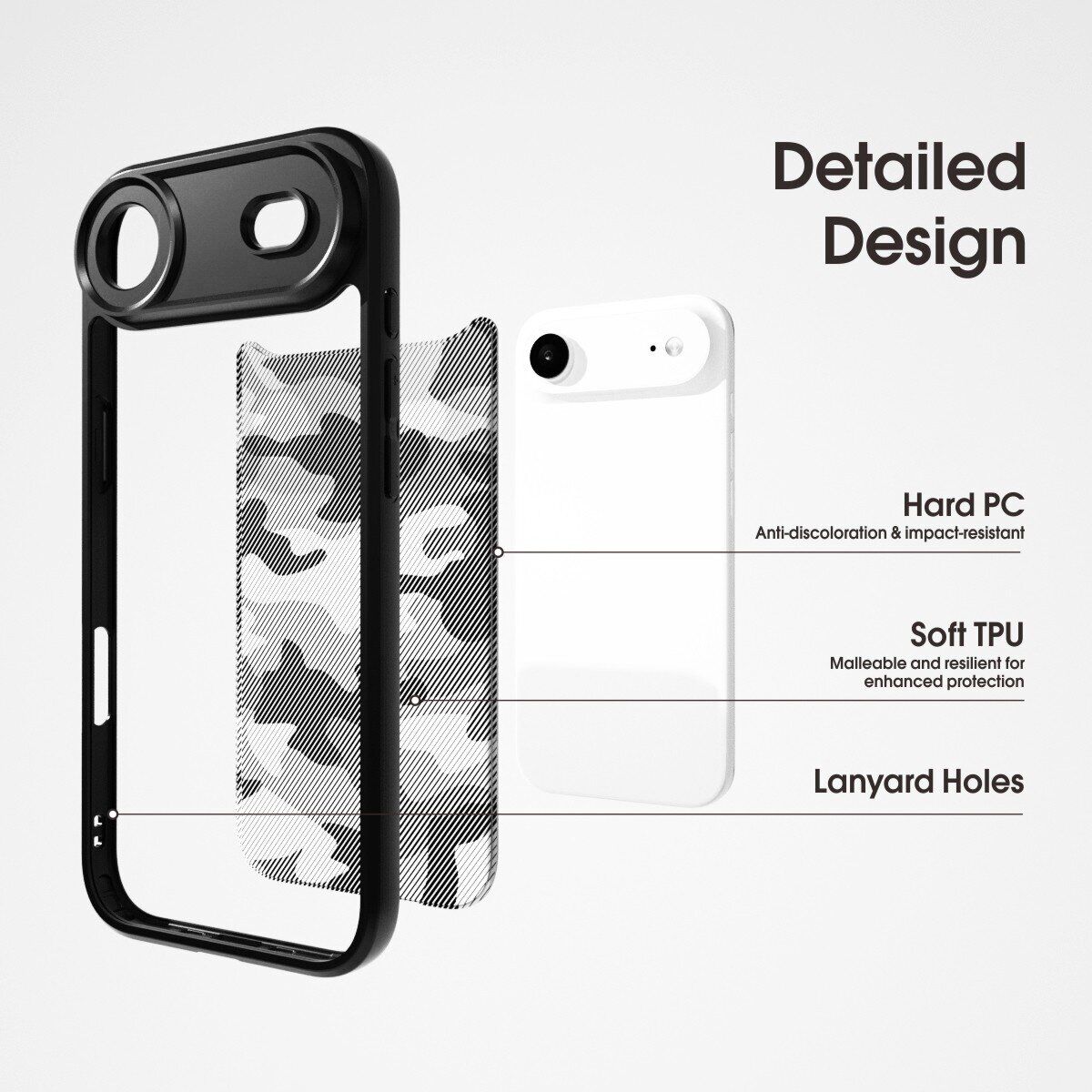 Защитный чехол IBMRS Military для Apple iPhone Air представляет собой высококачественную накладку, разработанную с использованием двух разных материалов: мягкого силикона (TPU) и жесткого поликарбоната. Эта комбинация гарантирует превосходную защиту от механических повреждений, таких как царапины, удары и другие виды воздействия. Уникальная особенность чехла — углы с встроенной Airbag-технологией, которые значительно повышают его устойчивость к случайным падениям. Чехол идеально сбалансирован по весу и размерам, предоставляет полный доступ ко всем портам и имеет стильный внешний вид, который дополняет эстетику вашего смартфона.