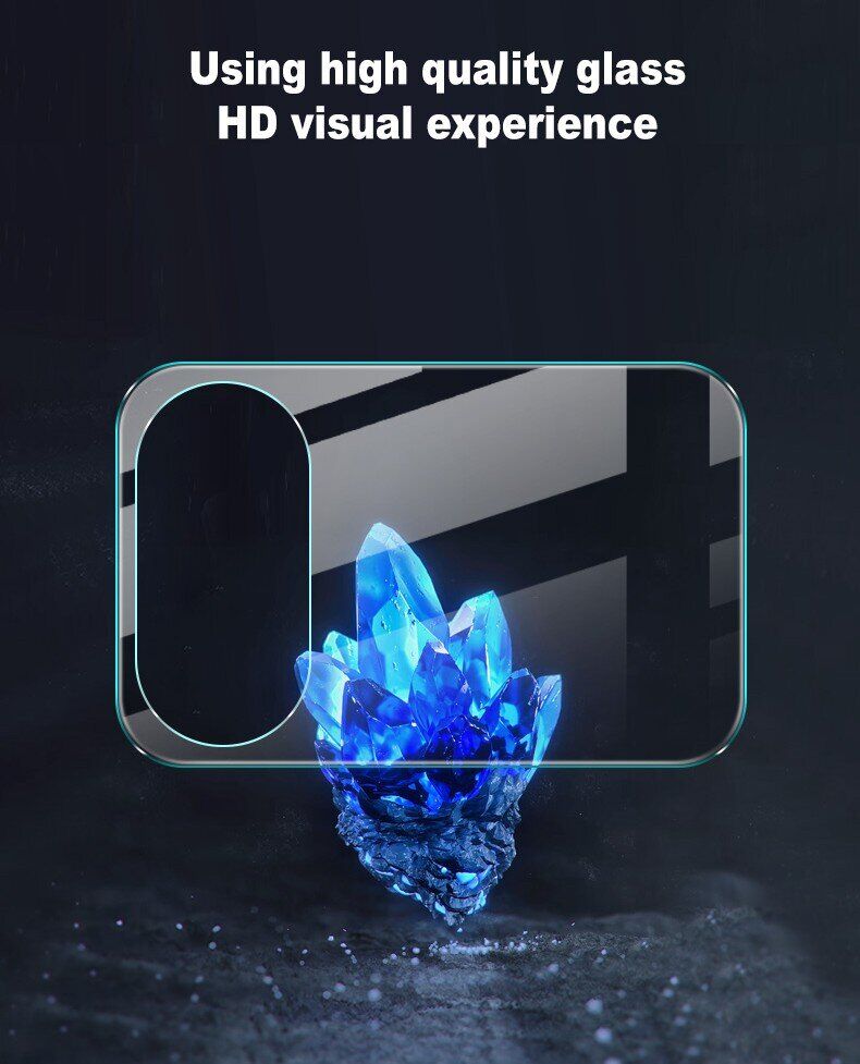 • Изготовлено из устойчивого к ударам и царапинам закалённого стекла, которое снижает риск повреждения камеры при контакте с твёрдыми поверхностями или случайных падениях;