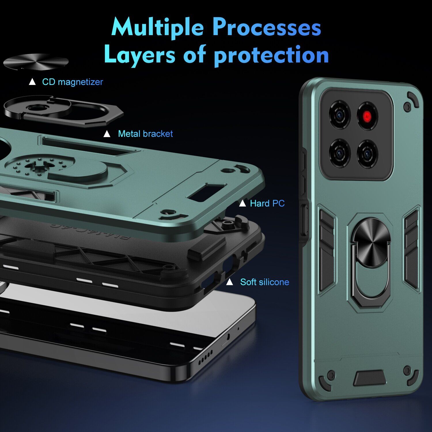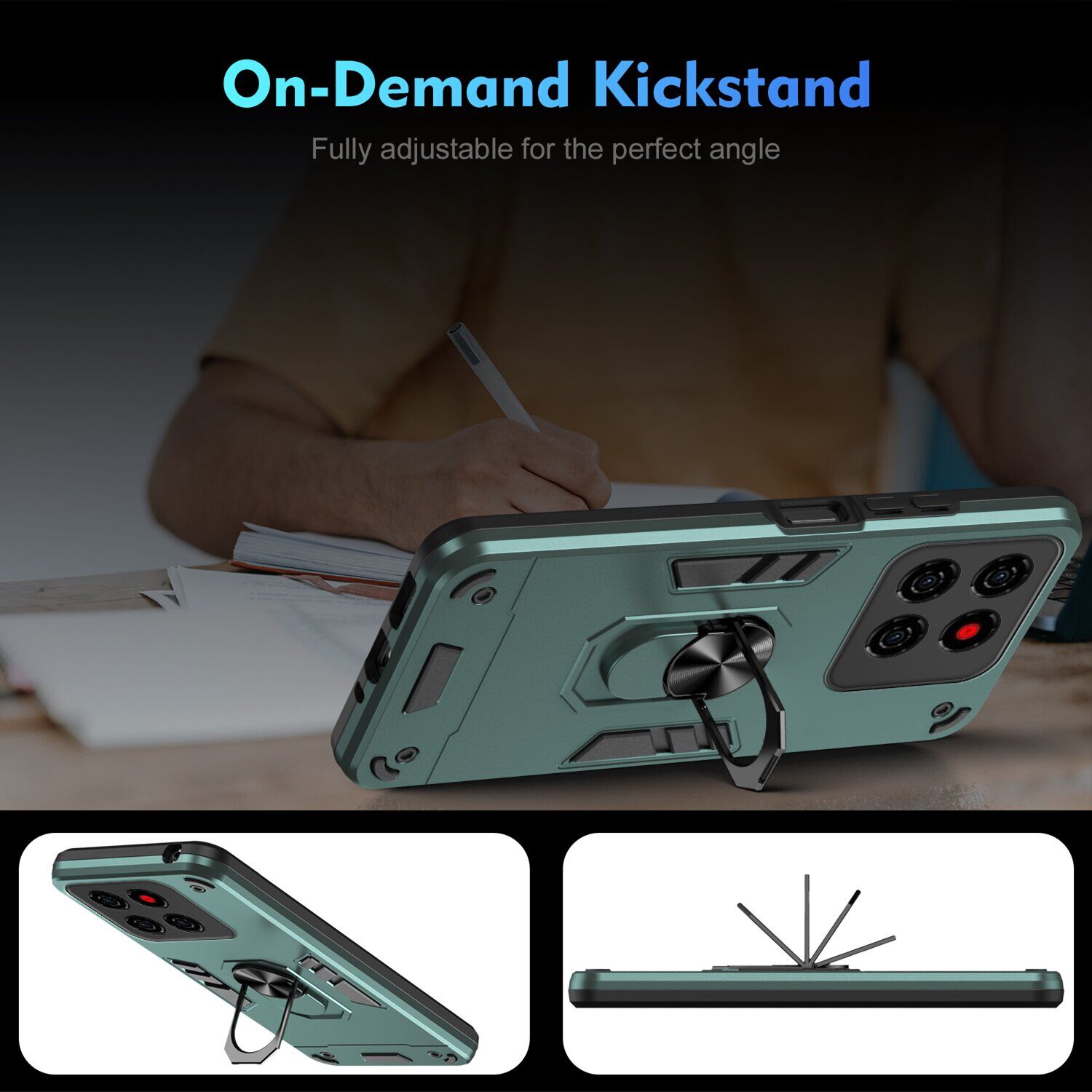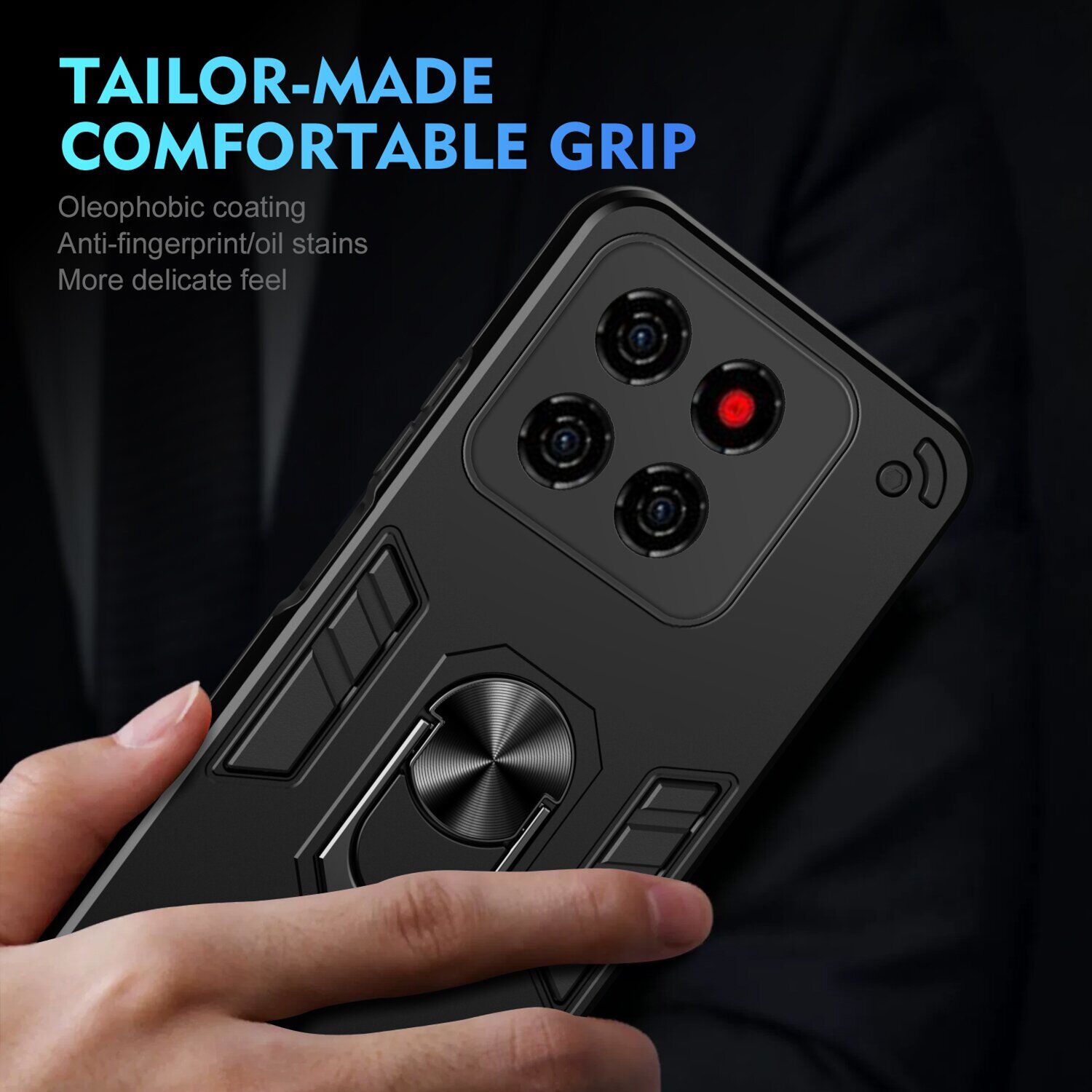Deexe Hybrid Shell – это чехол с повышенными защитными характеристиками, призванный обеспечить полную сохранность корпуса ZTE Blade A56 в процессе ежедневного использования. В его основе лежит двусоставная компоновка из прочного пластика и эластичного силикона (TPU). Сочетание двух материалов разной жесткости существенно повышает амортизационные характеристики изделия и позволяет без проблем справляться не только с царапинами и потёртостями, но даже трещинами и сколами, смягчая силу удара при падении на пол. Шероховатая фактура внешнего покрытия не собирает на себе отпечатки пальцев, а рифлёные элементы на спинке ещё и повышают ухватистость в руке. Важным элементом конструкции является специальное кольцо на спинке, способное выполнять сразу несколько полезных задач: во-первых, в кольцо можно просунуть палец, чтобы увереннее держать смартфон в руке; во-вторых, откинув кольцо, его можно использовать в качестве удобной подставки; ну и в-третьих, металлический элемент кольца позволяет свободно фиксировать устройство на панели магнитного автомобильного держателя, без необходимости нанесения специальной наклейки.