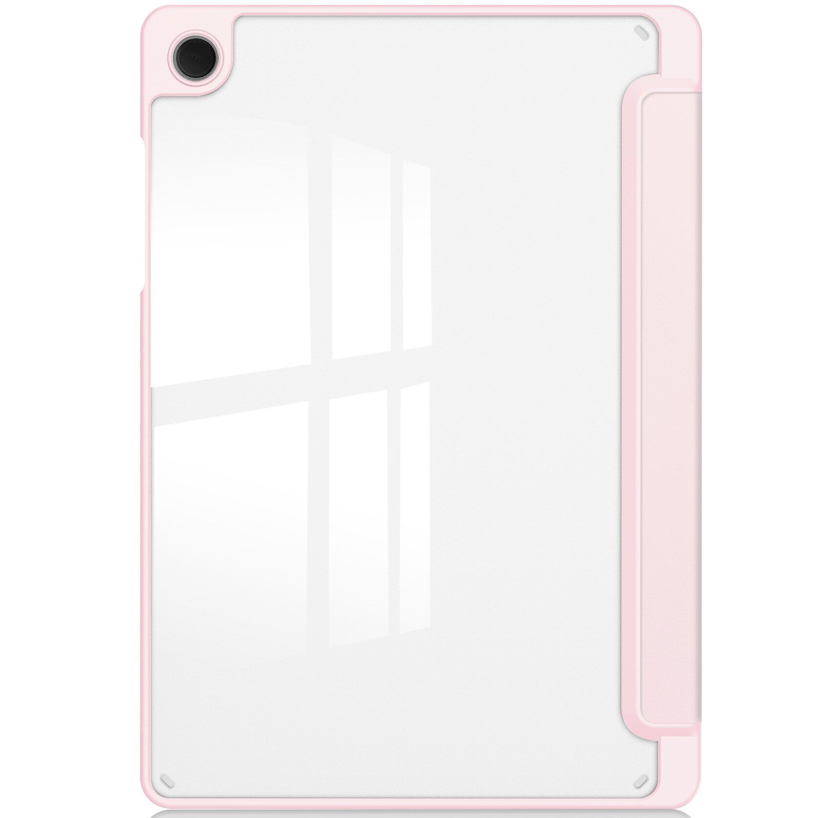 Чехол UniCase Folio Style выполнен в форм-факторе "книжка", что позволяет защитить не только корпус, но и сенсорный экран Samsung Galaxy Tab A11 Plus (X230/236). Конструкция аксессуара состоит из трех компонентов: эластичной основы из плотного силикона (TPU), внешней обложки из текстурированного полиуретана, а также прозрачной акриловой пластины, прикрывающей тыльную панель планшета. Производитель учел все конструкционные особенности устройства, потому чехол не перекрывает динамик, доступ к камере и аппаратные разъёмы, тогда как клавиши прикрываются мягкими пылезащитными дубликаторами. Сегментная верхняя крышка умеет складываться в подставку с двумя уровнями наклона, что позволит удобно разместить устройство для просмотра контента или набора текста.