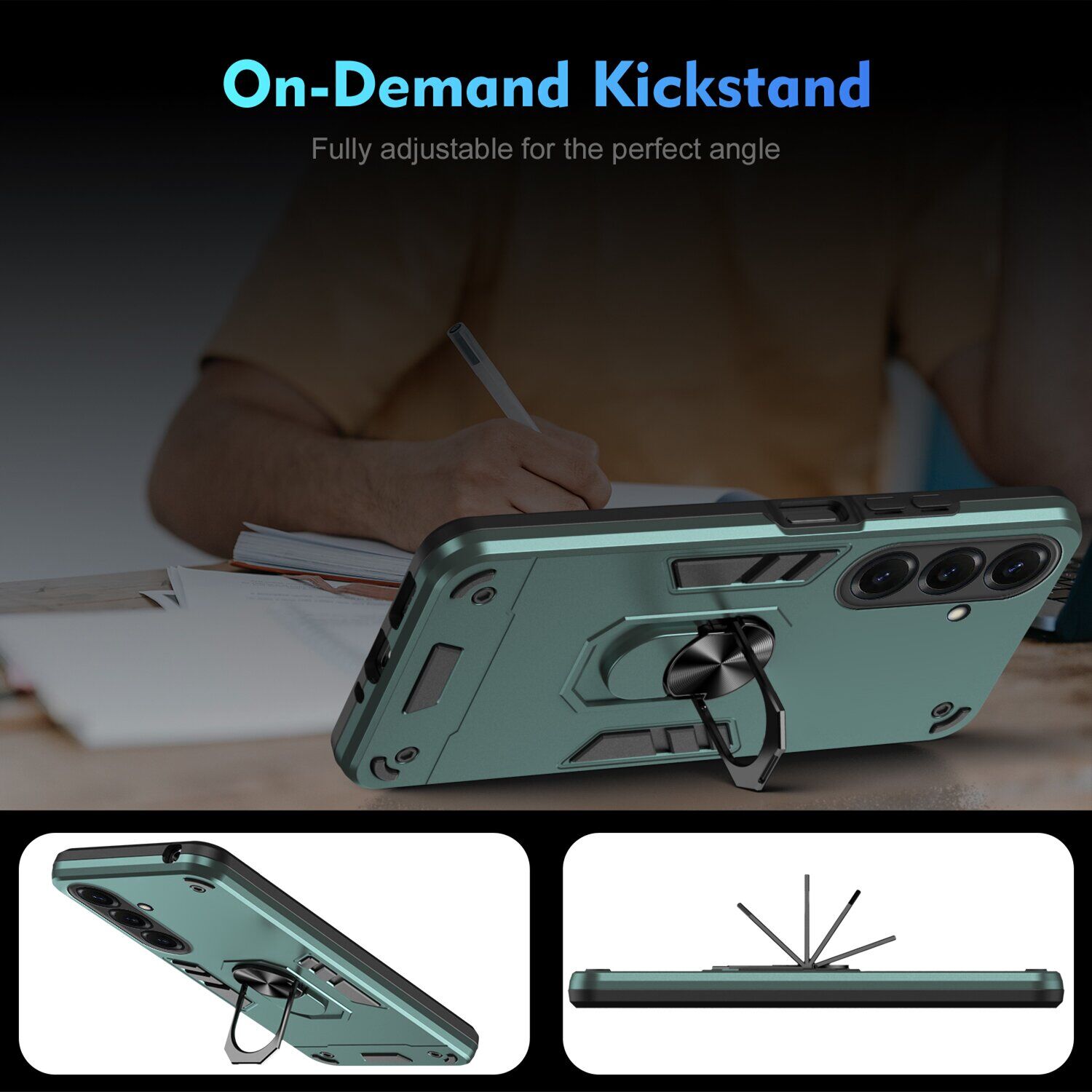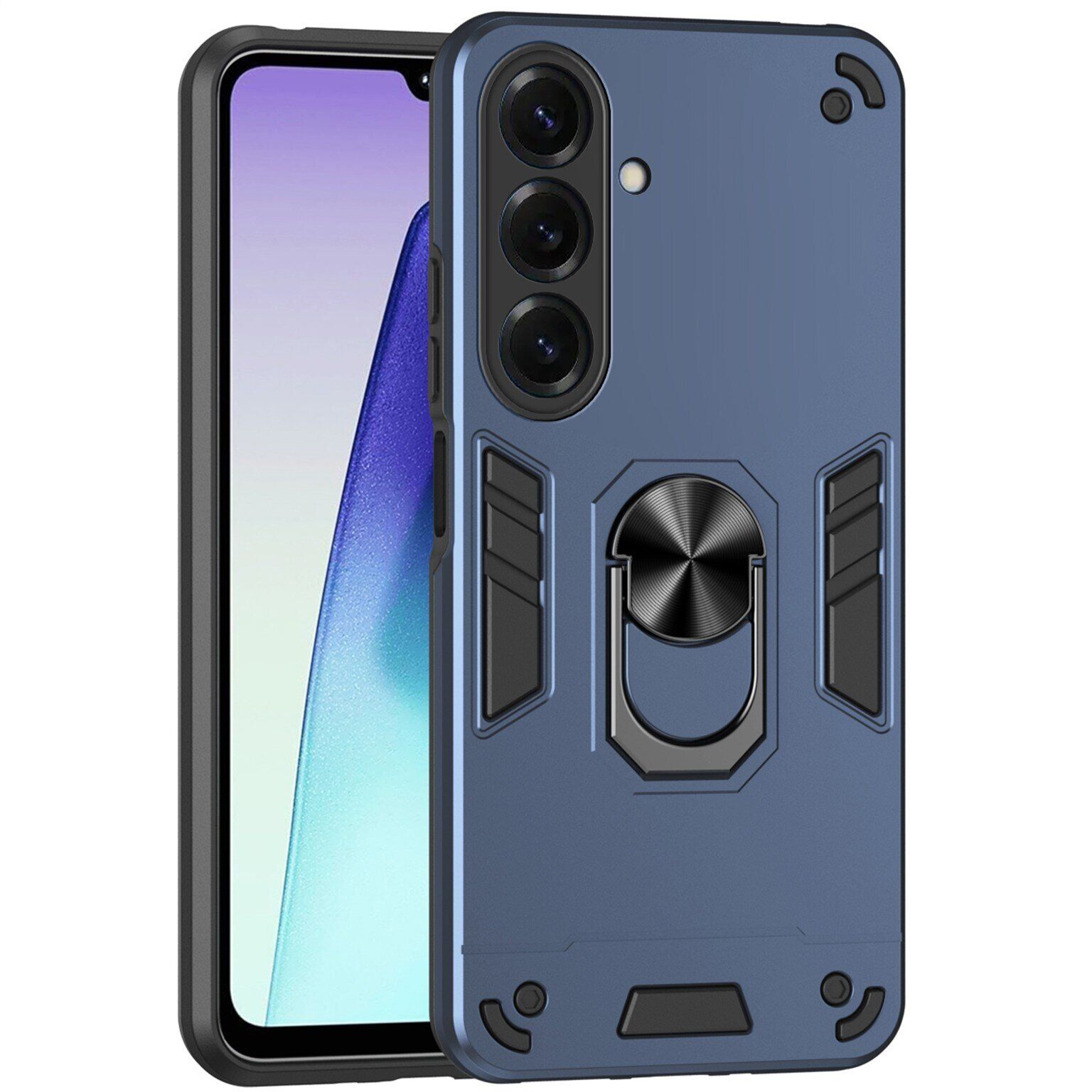 Deexe Hybrid Shell – это чехол с повышенными защитными характеристиками, призванный обеспечить полную сохранность корпуса Samsung Galaxy S26 в процессе ежедневного использования. В его основе лежит двусоставная компоновка из прочного пластика и эластичного силикона (TPU). Сочетание двух материалов разной жесткости существенно повышает амортизационные характеристики изделия и позволяет без проблем справляться не только с царапинами и потёртостями, но даже трещинами и сколами, смягчая силу удара при падении на пол. Шероховатая фактура внешнего покрытия не собирает на себе отпечатки пальцев, а рифлёные элементы на спинке ещё и повышают ухватистость в руке. Важным элементом конструкции является специальное кольцо на спинке, способное выполнять сразу несколько полезных задач: во-первых, в кольцо можно просунуть палец, чтобы увереннее держать смартфон в руке; во-вторых, откинув кольцо, его можно использовать в качестве удобной подставки; ну и в-третьих, металлический элемент кольца позволяет свободно фиксировать устройство на панели магнитного автомобильного держателя, без необходимости нанесения специальной наклейки.