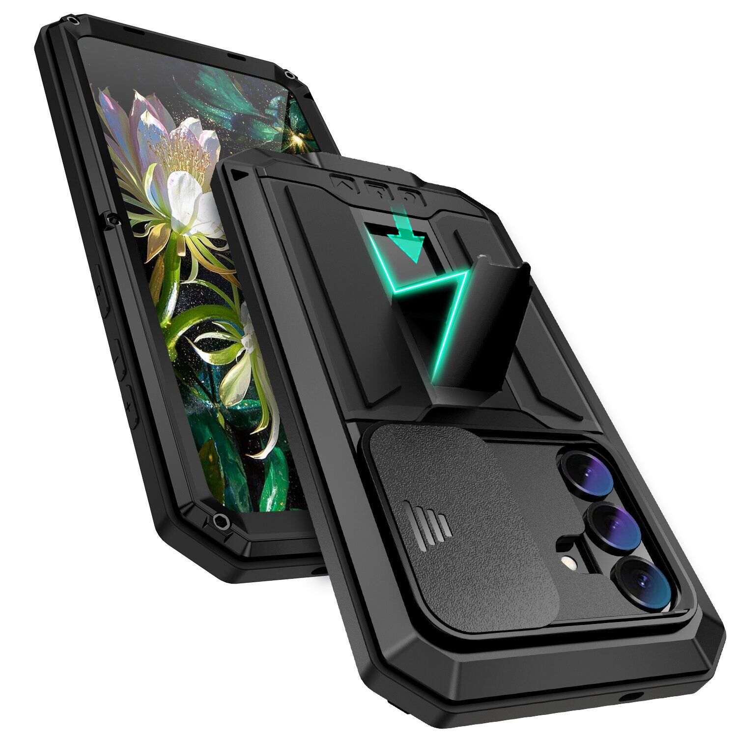 R-JUST Armadillo – всесторонняя защита для вашего Samsung Galaxy S26 (S942). Сочетание амортизирующего силикона, устойчивого поликарбоната и крепкого металла создает непробиваемый барьер для механических угроз. Уникальность чехла состоит в его способности оберегать каждый уголок вашего телефона: от дисплея, покрытого закаленным стеклом, до камеры, защищенной специальной шторкой. Откидной упор на задней панели добавляет функциональности, позволяя комфортно размещать устройство в горизонтальном положении.